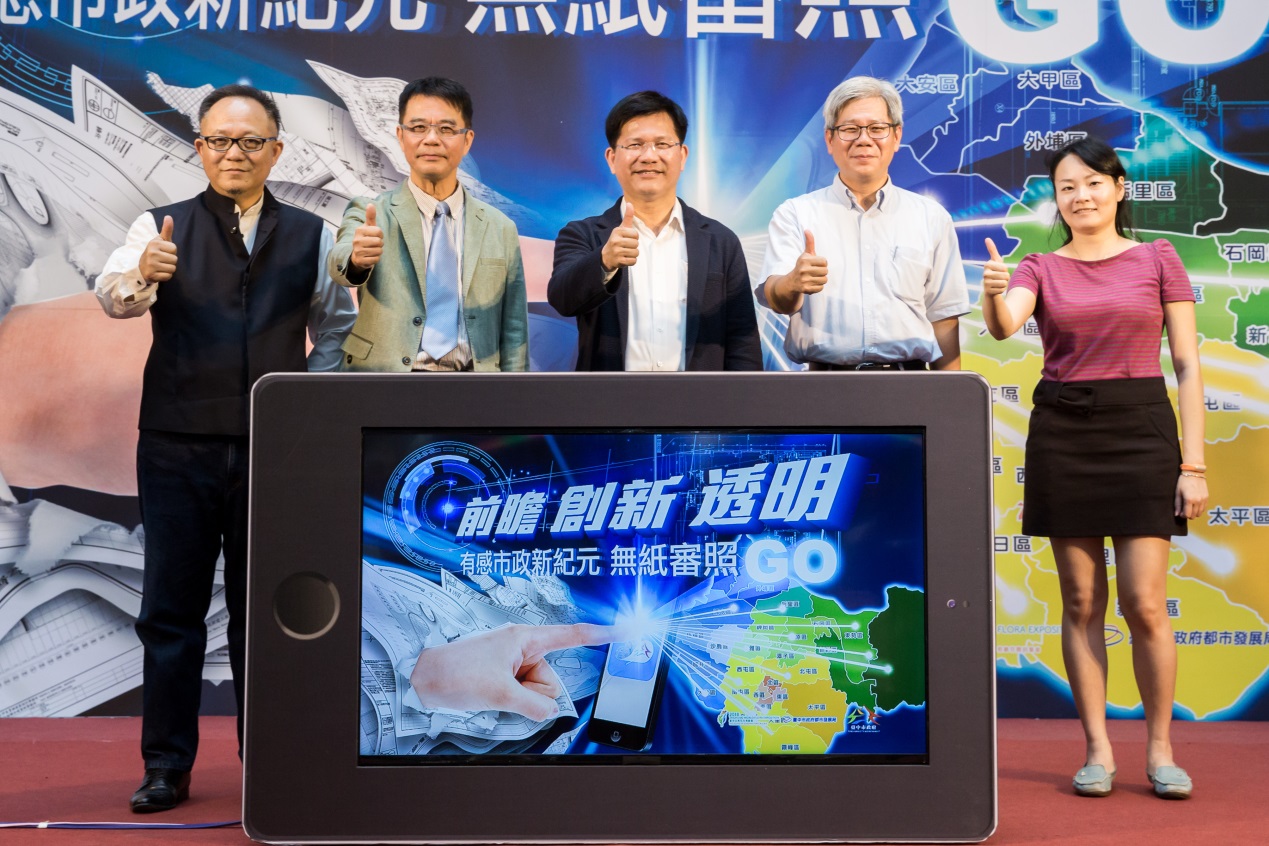行政流程創新服務措施方面,市府全國首創「雲端無紙審照一碼通」服務,建照審查人員透過「無紙審照Go」APP,可線上開啟建築師送審電子建築圖說進行審查;申請人透過「建管得來速」APP則可掌握申請案件最新進度,達到即時審查、流程透明化效果。