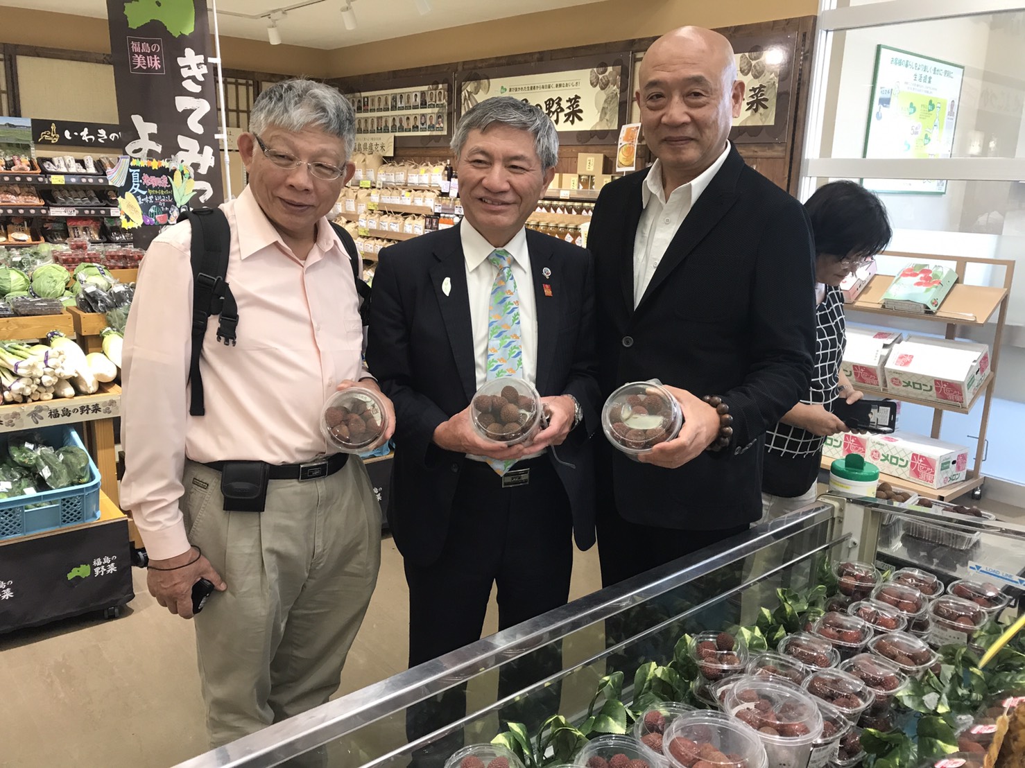 今年氣候穩定,台中市荔枝量多質優、鮮嫩多汁,並已陸續上市,台中市政府積極開拓外銷日本通路,其中日本福島縣York Benimaru Corporation超市也販售台中荔枝,副市長張光瑤今(29)日帶團前往福島縣York Benimaru Corporation超市參訪,推廣台中荔枝,也邀請日本朋友參加台中將於11月3日舉辦的花博盛會。