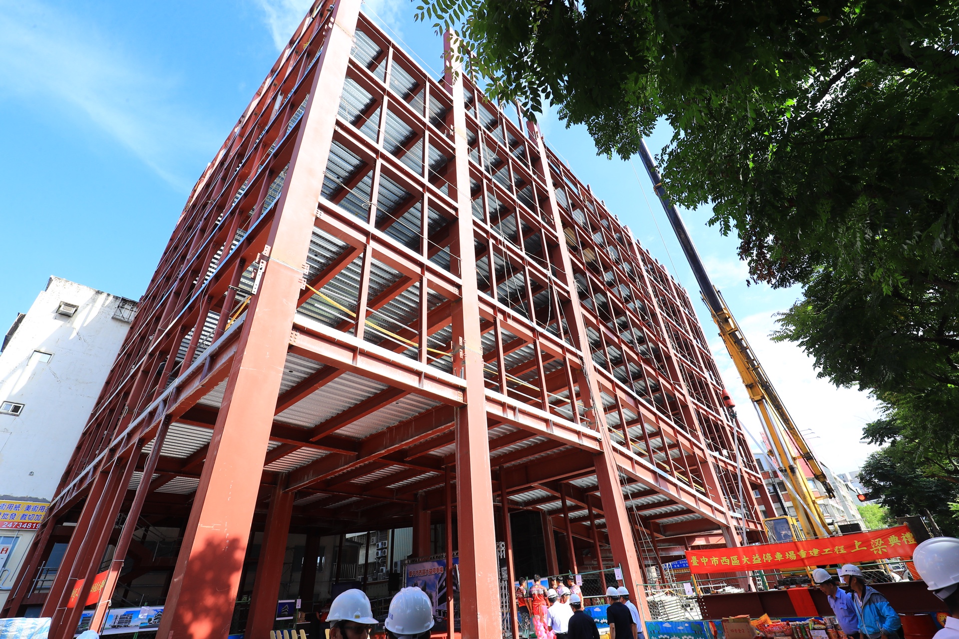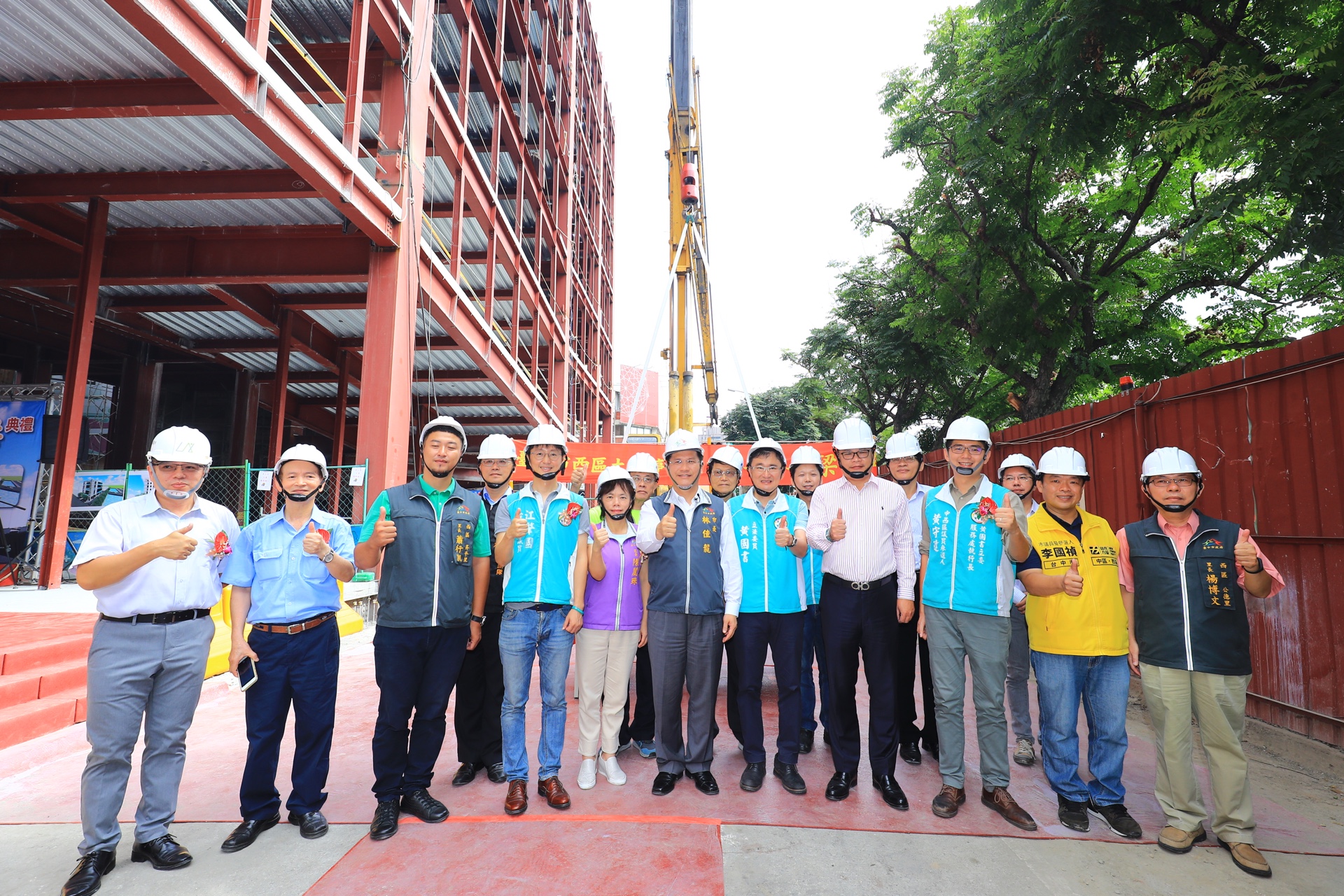 市長林佳龍在交通局長王義川陪同下出席西區大益停車場上樑典禮,立法委員黃國書、市議員江肇國、西區區長陳麗珠及多位地方里長也出席關心,市議員張宏年並派員到場致意。