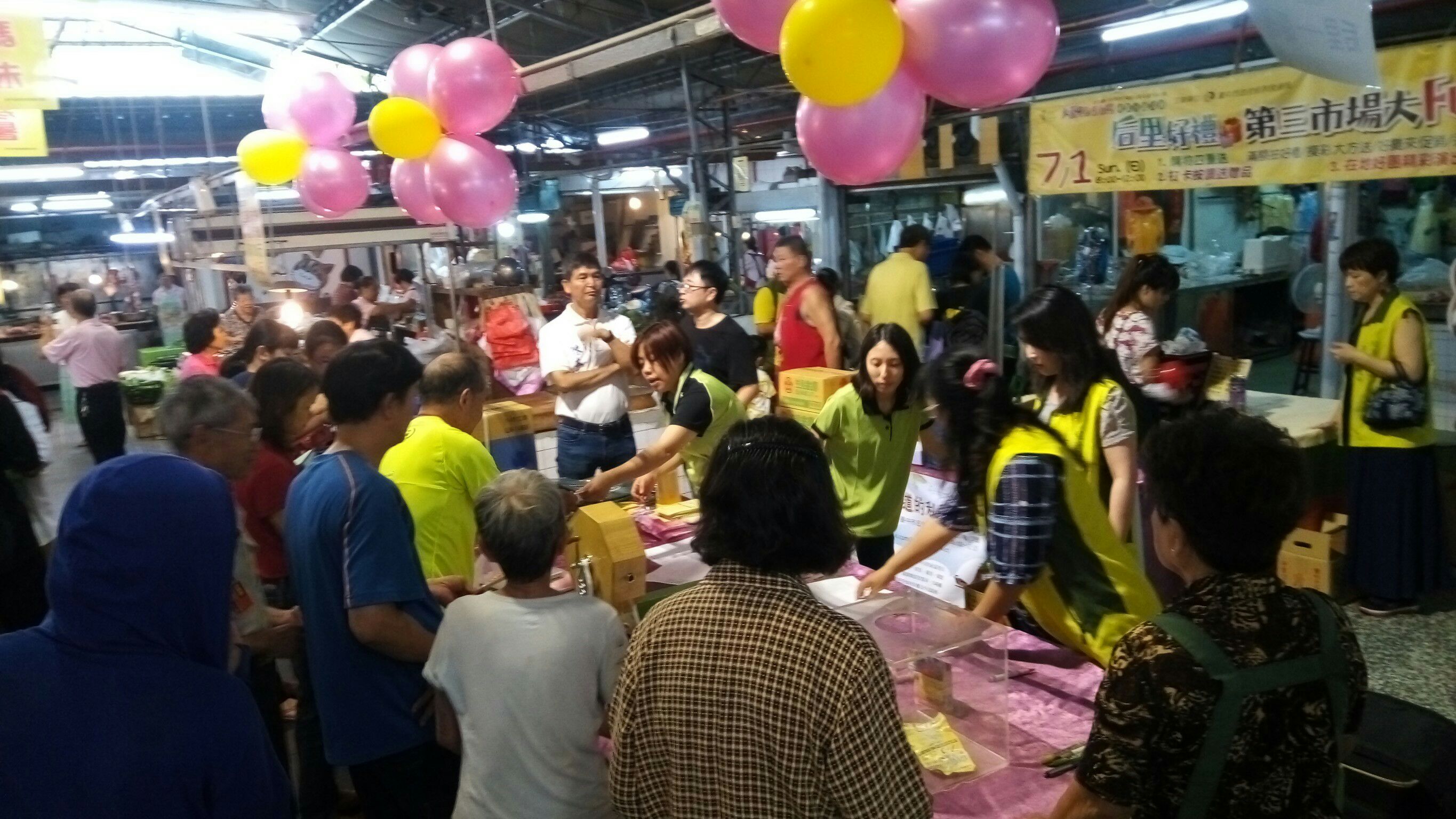 台中市政府經濟發展局推動「大台中友善市場社區行銷活動」,以實質促銷方式開拓新客群。經發局今(1)日來到后里第三公有零售市場舉辦行銷活動,消費滿額可兌換街頭藝人現場製作的造型氣球,消費滿200元還可抽電鍋、保溫瓶等好禮,現場攤商也推出折扣或贈品,希望帶動市場買氣。