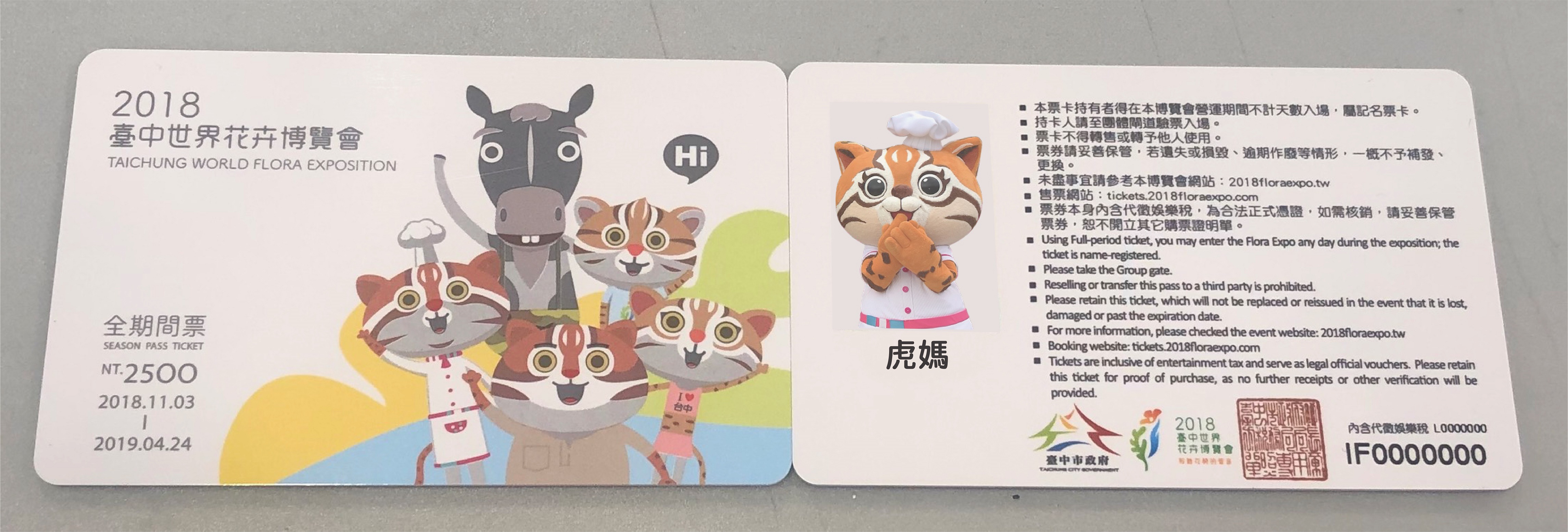 市府表示,台中花博提供多樣化的票券選擇,滿足不同購票需求,這次推出「全期間票」,票面設計採石虎家族和歐米馬合體的超萌圖樣,憑票可在花博173天展期任意暢遊各大展區,若以預購優惠價2,000元計算,平均1天門票不到12元。全期間票屬記名票券,購買時須填寫個人基本資料並附上相片,票券不得轉予他人使用。