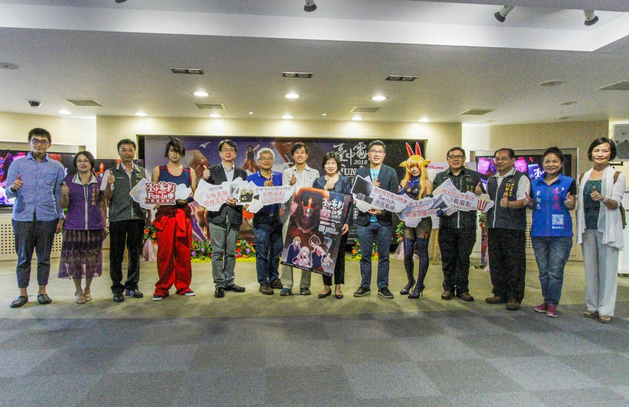 市府新聞局今日舉辦宣傳記者會,由Coser裝扮「2018台中國際動畫影展」開幕片《重甲機神》男女主角「雷鳴海」、「天音」的走秀表演拉開序幕,接著由副市長林依瑩、新聞局主秘林尚賢、台中市影視發展基金會執行長林盈志、國產動畫《重甲機神》黃瀛洲導演、東海大學教授施奇廷等人宣布活動起跑。