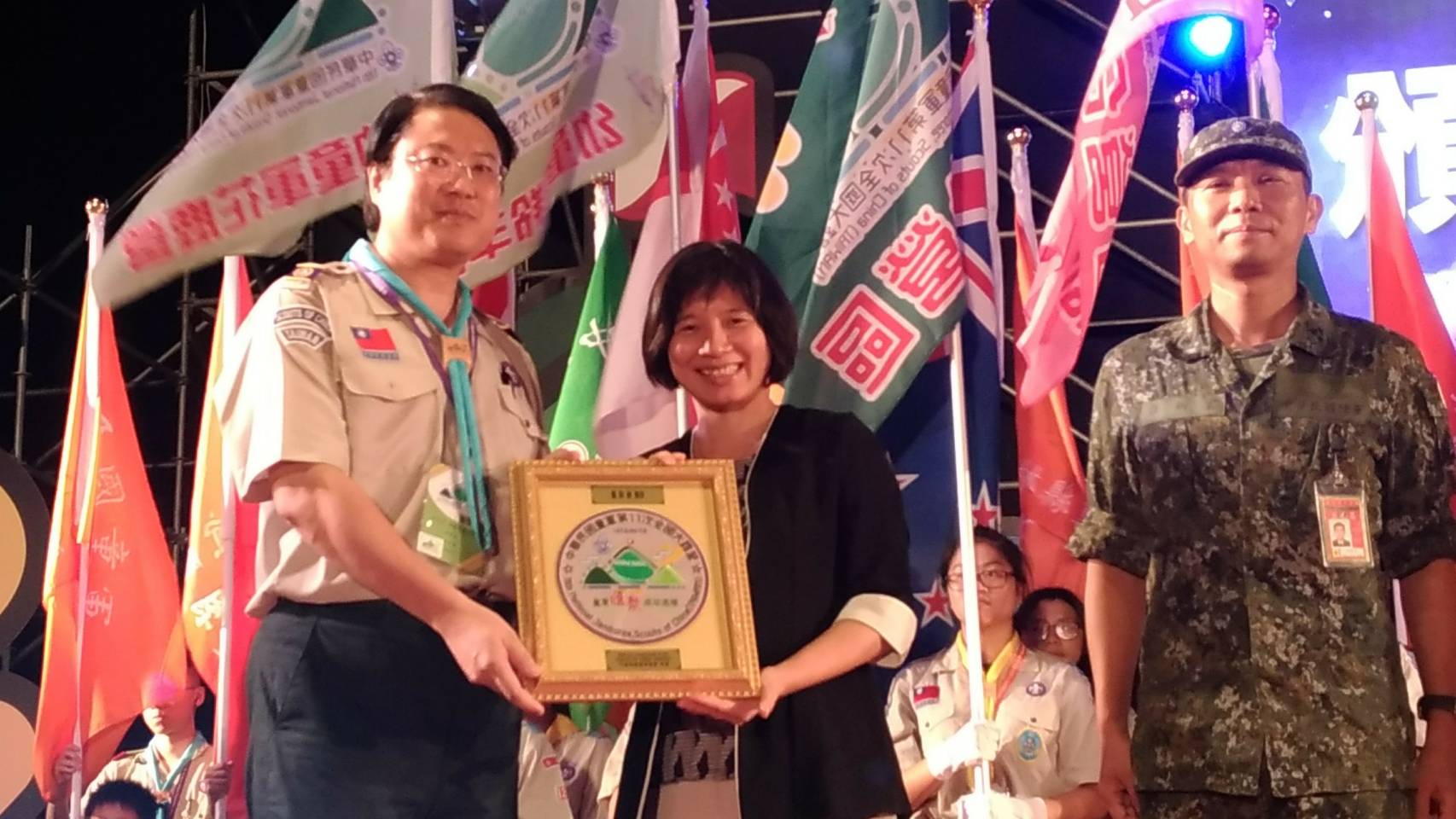 睽違7年的中華民國童軍第11次全國大露營,匯聚共17國、逾1萬名童軍,昨(5)日在台中市成功嶺陸軍營區舉行閉幕典禮,副市長林依瑩前往致意,並代表市府接受基隆市長兼中華民國童軍總會理事長林右昌致贈感謝狀。