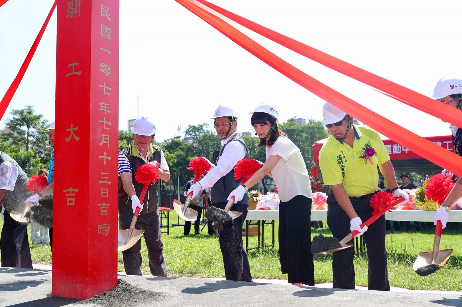 今日林市長在運動局長王慶堂、建設局副局長顏煥義陪同下,出席位於潭子區勝利路的潭子國民運動中心開工動土典禮,帶領施工團隊共同祈求工程圓滿順利,立法委員洪慈庸、市議員張雅旻、蕭隆澤,立法委員盧秀燕、市議員賴朝國、翁美春服務團隊皆到場致意。