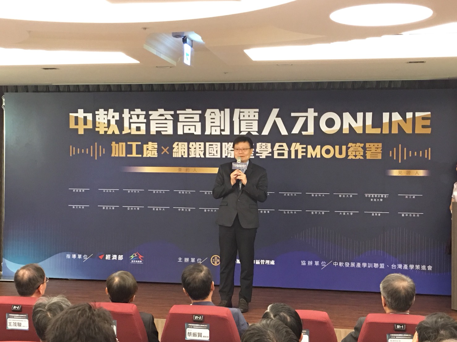 為協助台中軟體園區廠商解決缺才問題,經濟部加工出口區管理處今(13)日邀請台中市政府、台中市電腦公會、勤益科技大學、嶺東科技大學、僑光科技大學等中部大學共同簽署「中軟培育高創價人才ONLINE」產官學合作備忘錄,盼透過培訓、拔尖及媒合等措施,創造符合創新娛樂產業發展趨勢的人才,打造高創價人才生態系,提升台中軟體園區產業整體實力。