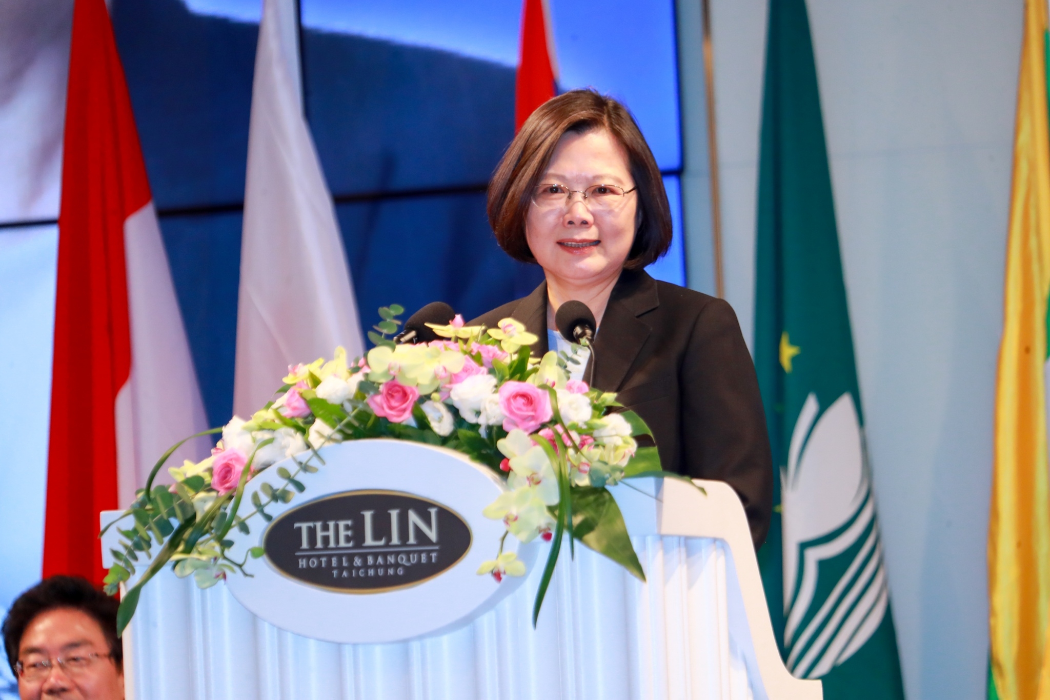今日蔡總統在市長林佳龍陪同下出席第25屆亞洲台商年會開幕典禮,立法院副院長蔡其昌、經濟部長沈榮津、僑務委員會委員長吳新興、外交部中部辦事處長宋子正、世界台商總會長林貴香、亞洲台商會總會長江文洲等人均到場共襄盛舉,現場有來自16國、近900名亞洲台商理、監事及各大洲友會幹部會員齊聚,場面盛大。