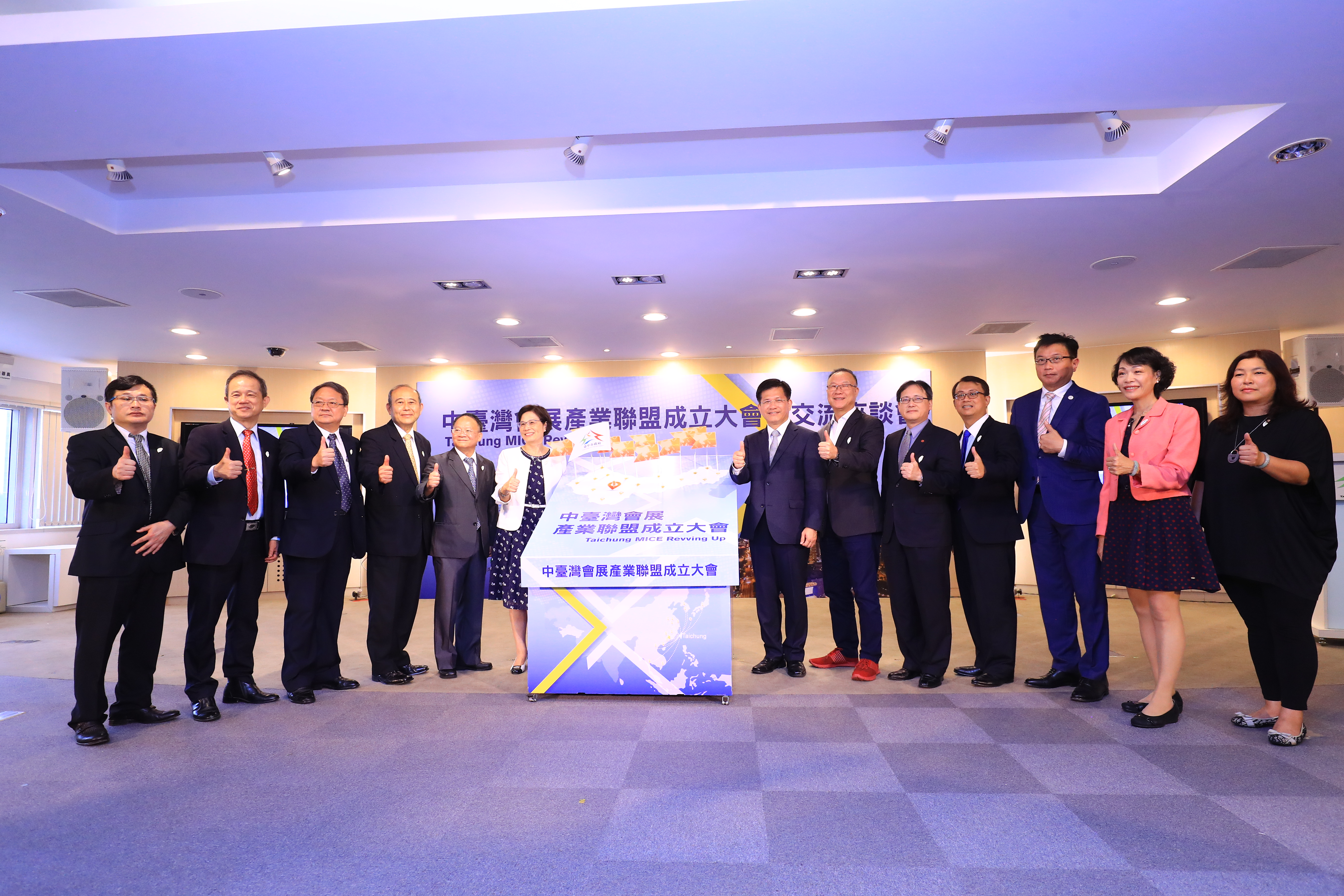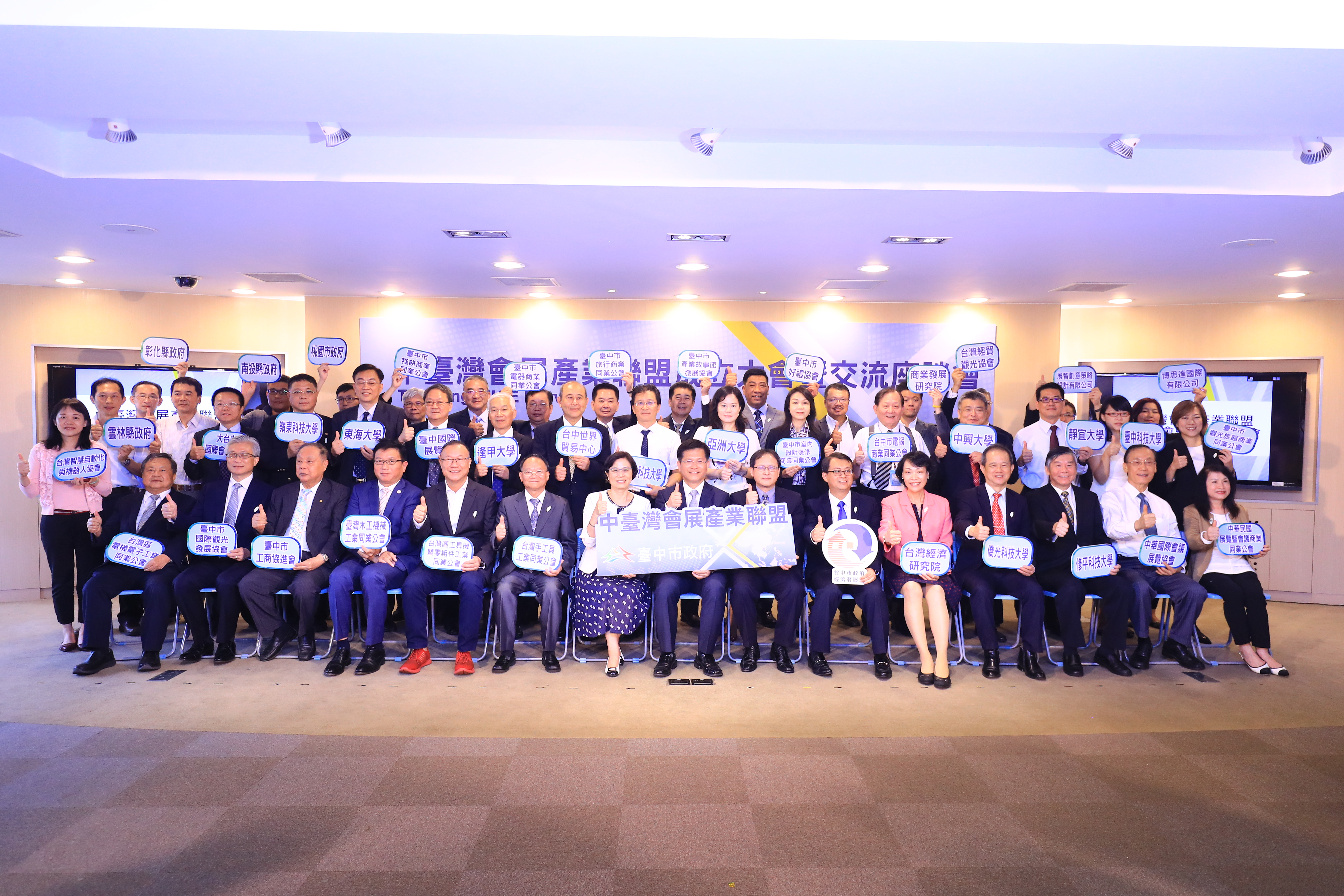 「中台灣會展產業聯盟」今日於台中市政府舉行啟動儀式,由市長林佳龍帶領台灣區工具機暨零組件工業同業公會、台灣手工具工業同業公會、台灣木工機械工業同業公會、台中市糕餅商業同業公會、台中市工商協進會、台中市觀光旅館商業同業公會,以及中台灣各縣市政府、台中轄區內各大專院校與會展研究機構等聯盟成員插旗,共同宣布聯盟成立;經濟部國際貿易局長楊珍妮、中華民國對外貿易發展協會副秘書長王熙蒙等人也出席見證。