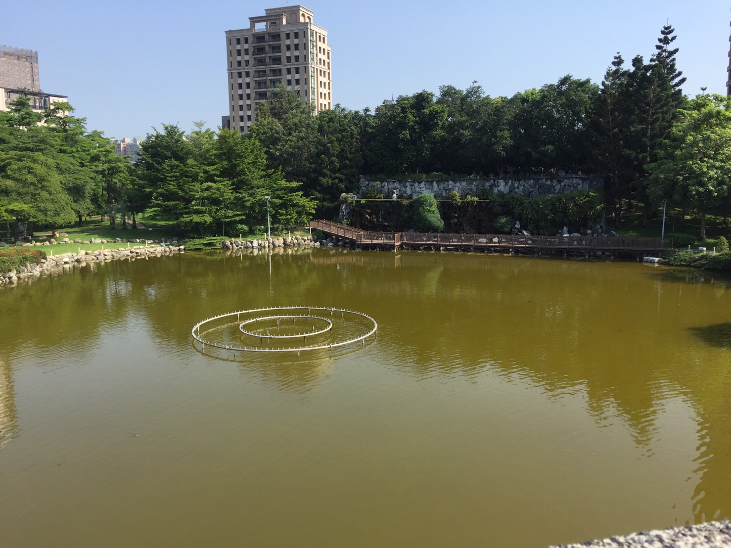 建設局指出,進入春季後,豐樂公園水池混濁,並產生異味,經調查發現,主因是民眾以飼料、麵包屑餵食魚類、烏龜及家禽動物,導致池中飼料、麵包屑、生物排泄物混雜,加速優養化及混濁現象。