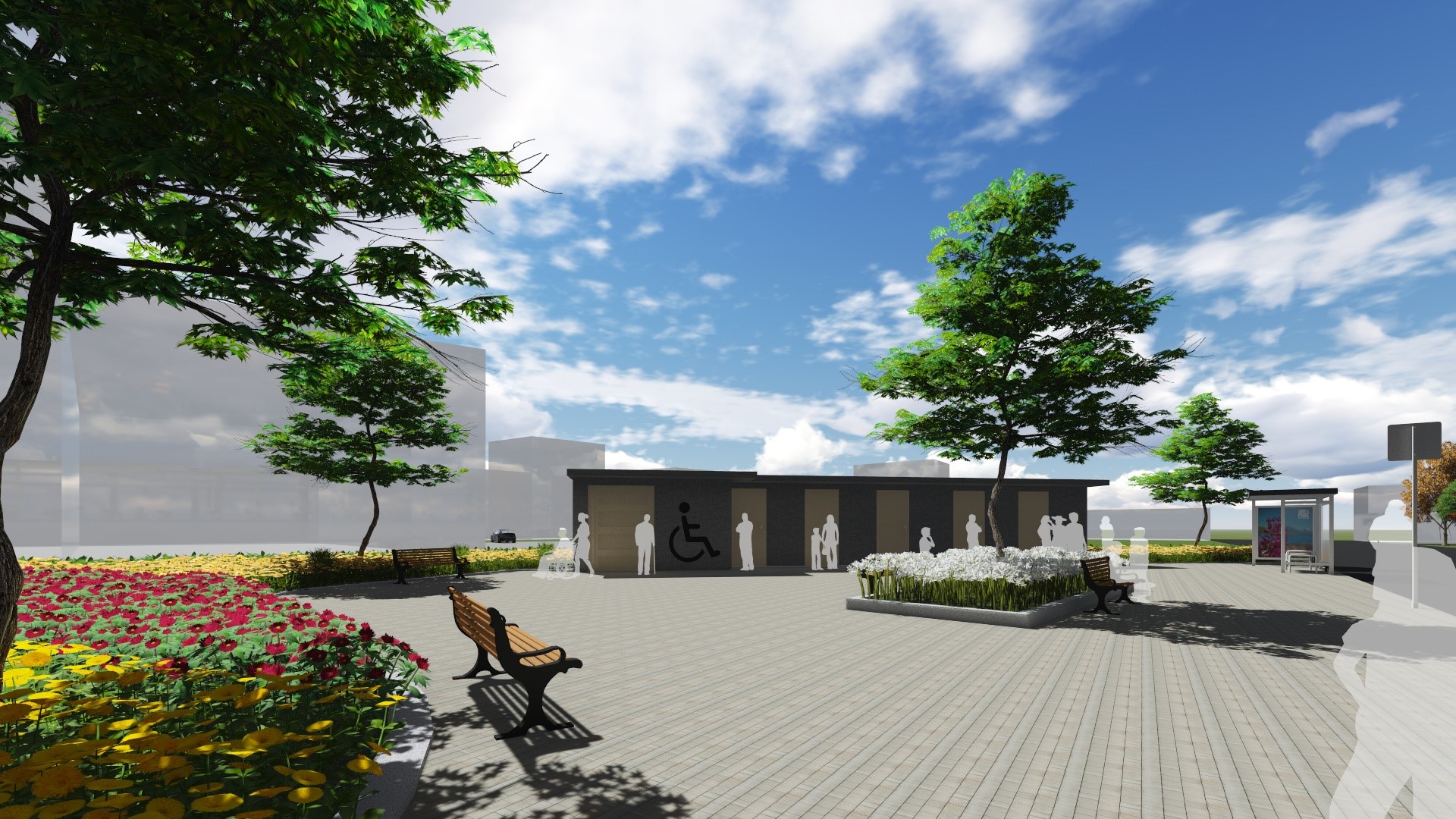 位於南屯的彩虹公園近年已成為國際知名觀光景點,但因鄰近僅有鄰里公園廁所不敷使用,台中市政府規劃在彩虹公園旁的「兒147用地」,以「花博小公園」為設計理念,打造深具特色的「景觀式廁所」,並採取男女廁所1:4、無障礙廁所1座設置比例,讓廁所不僅兼具使用機能與景觀造型,也符合在地使用需求,預計今年10月完工啟用。