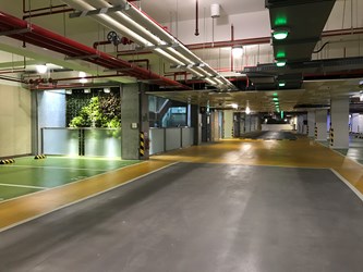 此外,配合水湳智慧城「智慧、低碳、創新」的核心理念,中央停車場內除設有98席汽車、101席機車充電格位外,並規劃有十分完善的智慧停車設施,像是車牌辨識、月租車e-tag感應、多卡通自動收費系統,加上每一停車格均有車位在席偵測,便利車輛快速進出及依車道燈號迅速尋找到停車位。