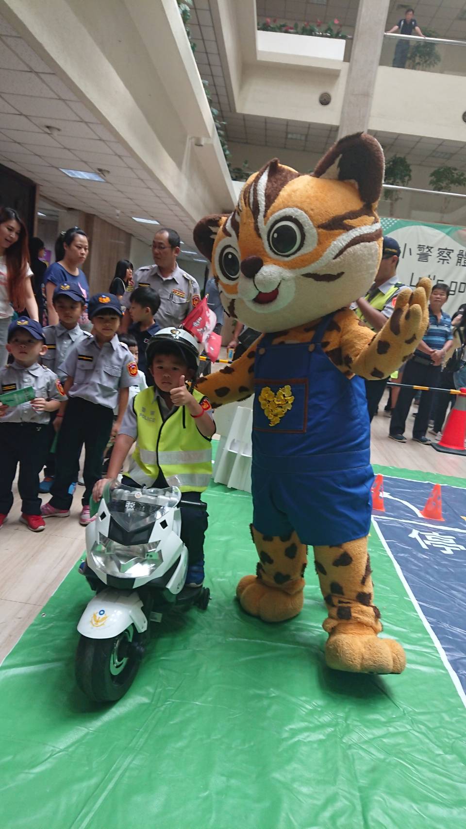 而今日活動也邀請花博吉祥物石虎家族弟弟「來虎」,背著「小小警察體驗營 Let's go」的紅色值星帶,帶領小朋友一起闖關,包括「交通安全」、「刑事偵查」、「刑案鑑識」、「犯罪預防」等各項活動,不少家長及兄姐全家總動員陪同小朋友全程參與活動,也稱讚對活動中寓教於樂的「反毒」、「打詐」及「刑事鑑識」宣導留下深刻印象。(7/29*6)*警察局