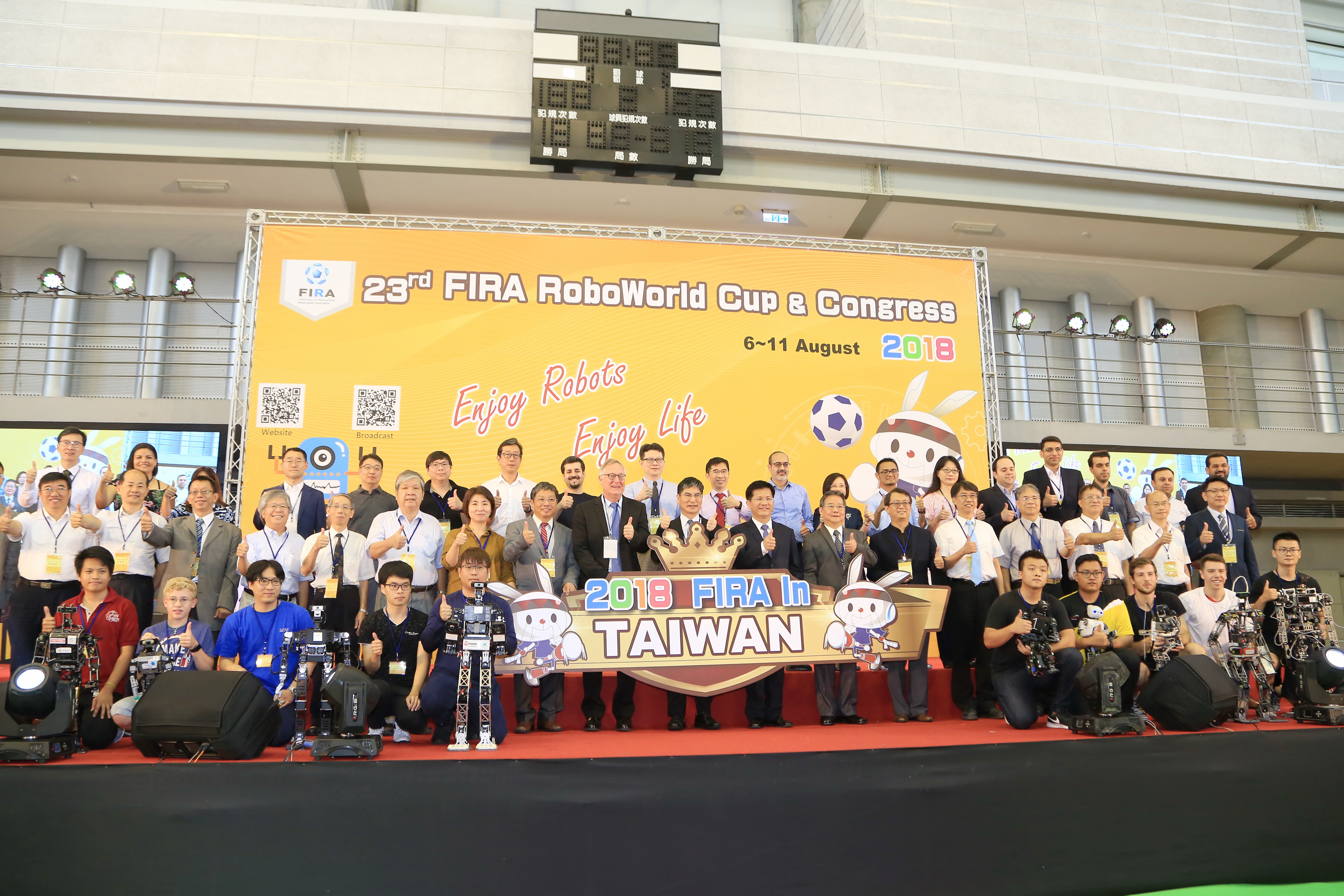 FIRA世界盃智慧機器人運動大賽今年邁入第23屆,台中市長林佳龍、科技部長陳良基、中科管理局長陳銘煌、FIRA總部主席Jacky Baltes、FIRA大會主席杜國洋、台灣機器人學會理事長蔡清池等人今日均出席開幕典禮,見證這場國際型競賽。