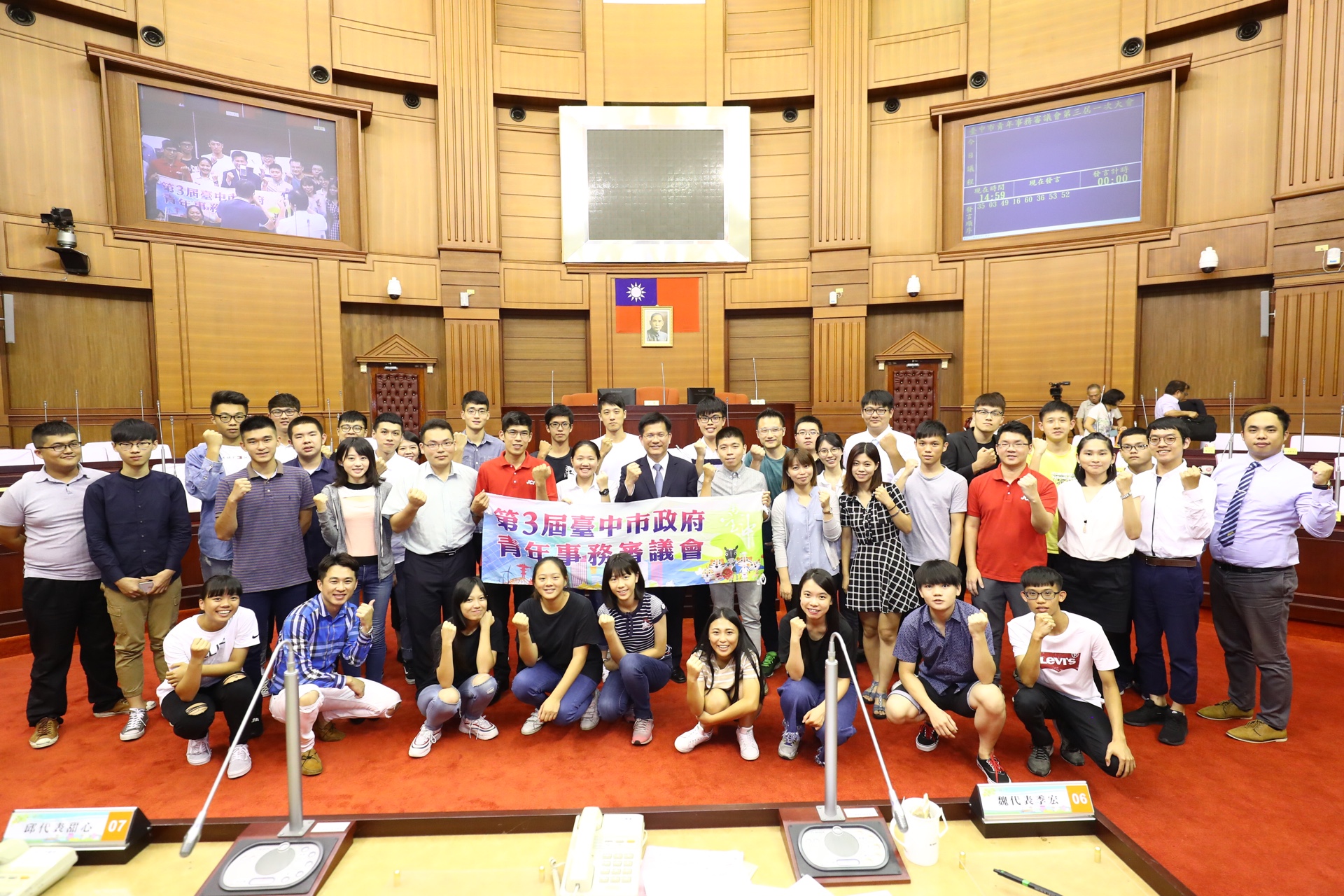 為鼓勵青年學子積極參與公共事務,台中市政府首創「青年事務審議會」,事先安排議事規則、市政建設及市府組織說明講解,以及柳川、綠川、第2市場參訪等行程;並參考市議會運作模式,於8月10、16、17、20、21日在原台中縣議會召開第1次會議,由市長及副市長率領各局處代表備詢,讓青年代表展開議題質詢,提供市政建言。