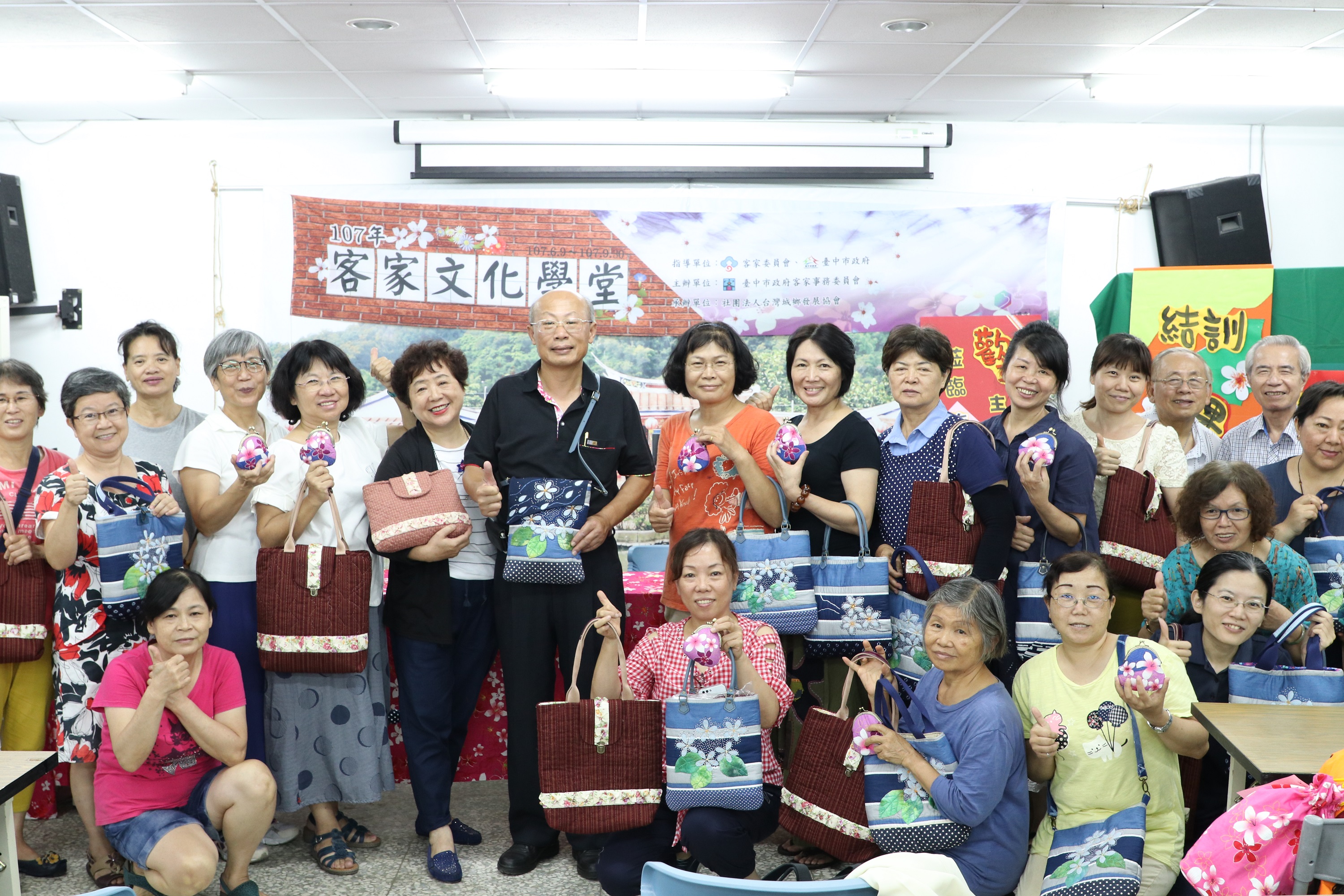 107年客家文化學堂客家花布縫紉初階班結業式昨(12)日在土牛社區活動中心舉行,台中市政府客委會主委劉宏基頒贈結業證書,感謝市民對客家技藝傳習的重視,展現客家技藝的活力與創意。