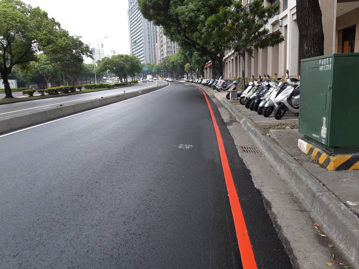 台灣大道台中市主要幹道之一,車流量龐大,台灣大道四段機慢車道在經年累月使用下,道路下方寬頻管道毀壞,也造成路面及部分路基破損,影響行車安全。台中市政府建設局本月初進行台灣大道四段機慢車道福安路至國際街路平工程,全長約4,400公尺,已於日前完工,平順的路面,讓機車族行車更安全。