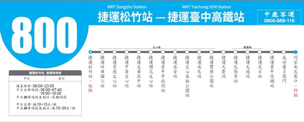 交通局長王義川表示,800路捷運快線公車「捷運松竹站-捷運台中高鐵站」在文心路上僅停靠未來捷運站的站位,站位名稱前面會冠上「捷運」兩字,讓市民先熟悉各捷運站位置及站名。花博結束後,全線改以電動公車行駛,讓文心路廊再添一條全電動公車路線。