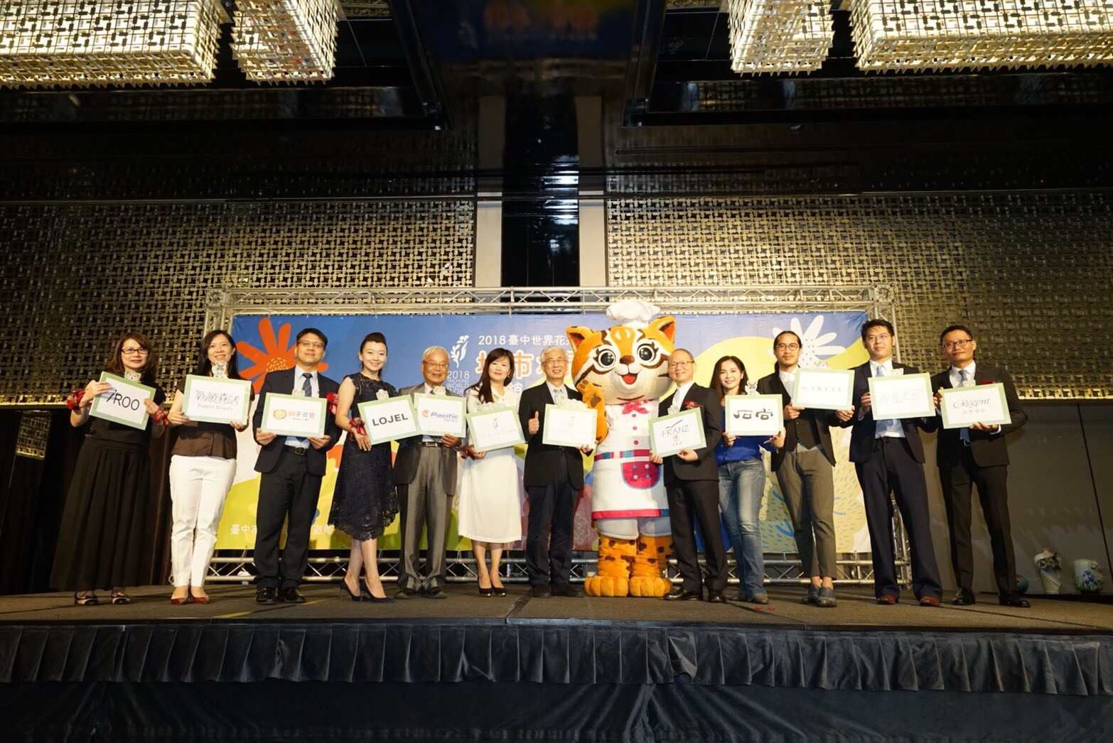 市府觀光旅遊局長陳盛山,康泰納仕樺舍集團副總經理周麗美、台北晶華酒店董事總經理吳偉正、法藍瓷總裁陳立恆、太平洋自行車董事長林正義、石尚企業專案事業處經理陳心怡、美冠皮件總經理王思穎、日和士林董事長陳美如和士林紙業總經理蔡丞哲以及國際時尚插畫家Gary Tu等人皆出席共襄盛舉。花博吉祥物石虎家族「虎媽」也到場助陣,現場相當熱鬧。