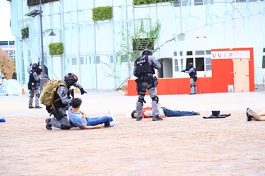 此次演練模擬活動期間,有5名恐怖分子,策劃於花博外埔園區樂農館挾持群眾、放置爆裂物威脅政府;現場動員各界參與,包括內政部警政署保一總隊維安特勤隊,以及空勤總隊出動直升機協助,刑事警察局偵查第五大隊則出動防爆隊配合市府消防局及衛生局等單位參演,結合臉型辨識系統、遙控無人機截斷器、搖控處理爆裂物機器人等高科技器材,展現警方科技建警成果。