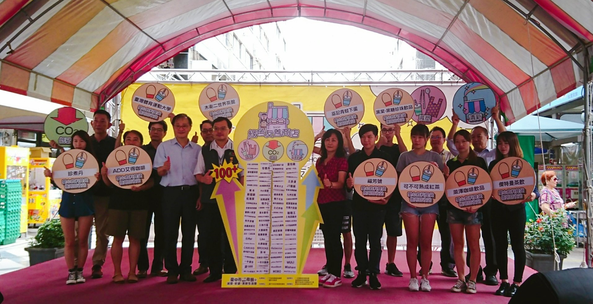 「減塑、低碳、清新生活圈」啟動記者會今(31)日在益民商圈廣場舉辦,邀請一中商圈管委會、益民商圈管委會、綠色友善商店及愛心飲料提袋特約商店等共同參與。記者會現場出示自備餐具及購物袋者,並可至服務台兌換宣導品,眾人共同宣示成為「綠色友善商店」的決心,氣氛熱鬧。