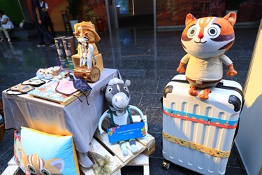 紀念商品則分為吉祥物類、生活類、創意類、工藝類,吉祥物類方面,石虎家族及歐米馬的玩偶是其中之一,特別委請國際知名絨毛生產商,針對服裝、吉祥物特徵、表情量身訂製,從眉毛、眼珠間距、斑點紋路、衣服顏色、玩偶豐滿度、絨毛觸感等都精心製作,萌萌的模樣相當吸睛。