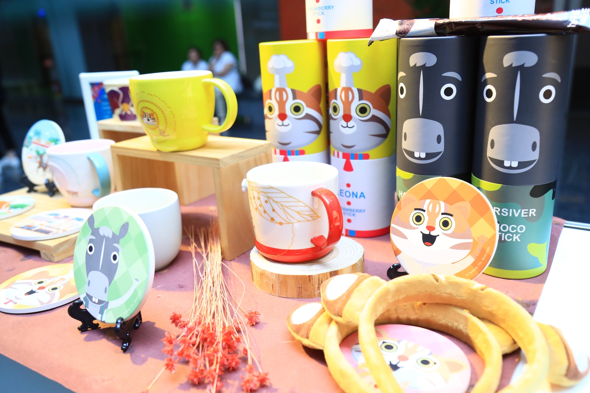 生活類方面則有馬克杯等商品,馬克杯的設計與在地品牌「瓷林」合作,融入浮雕、吉祥物及山櫻花、火鶴、百合、蝴蝶蘭等台中特色花卉,杯身更佐以金漆或水鑽裝飾,相當具典雅質感。