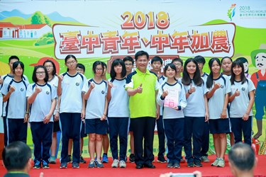 台中市政府農業局於台灣大道市政大樓舉行「107年度台中市青(中)年加農、賢拜傳承(陪同)開訓典禮暨106年度青年加農學員、107年度暑期見習學生結訓儀式」。市長林佳龍在農業局長王俊雄陪同下出席,議員張雅旻也到場支持。