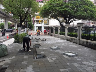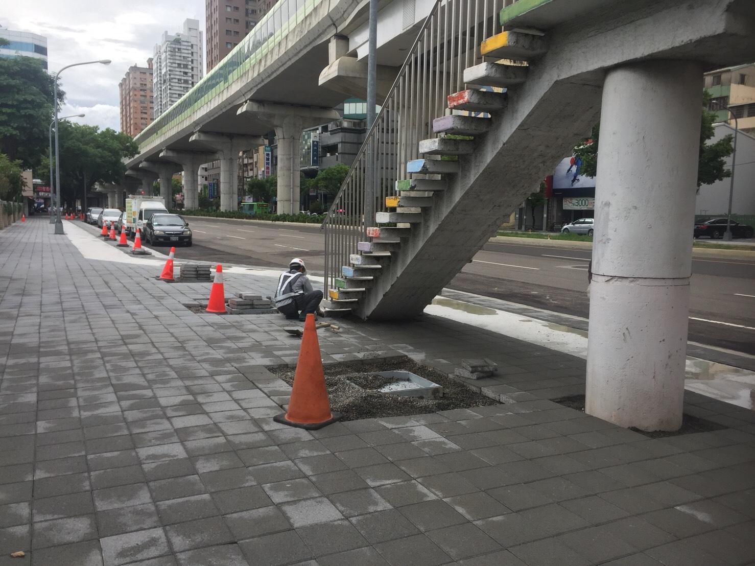 建設局指出,文心路捷運沿線人行道拓寬工程目前施工進度已達90%,8月下旬歷經連續10多天大雨干擾,現場施工人員雖持續施工,但工程進度仍受到衝擊,無法按原定8月31日完工。