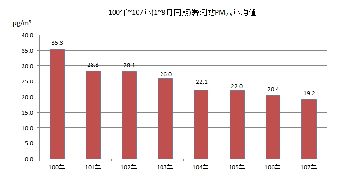環保局白局長指出,市府多管齊下改善空汙,積極推動各項創新的空汙防制策略,改善成效也逐漸展現,台中市106年PM2.5年均值每立方米20.2微克,首度優於全國平均20.5微克,為歷年最好的成績。