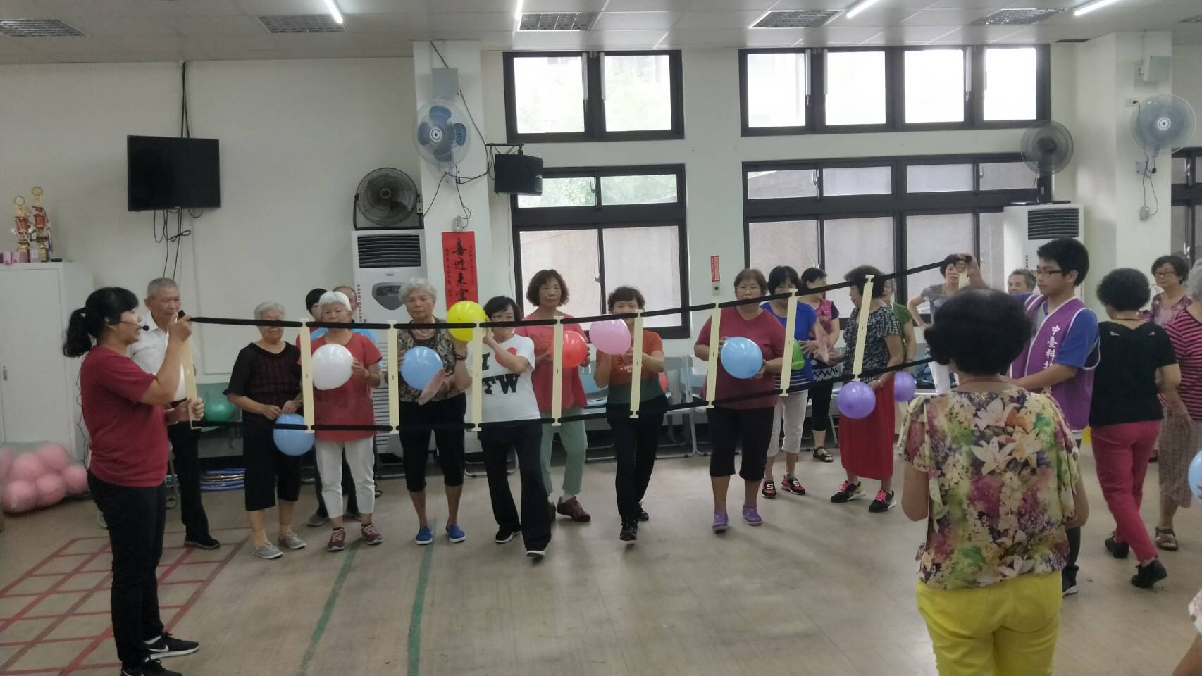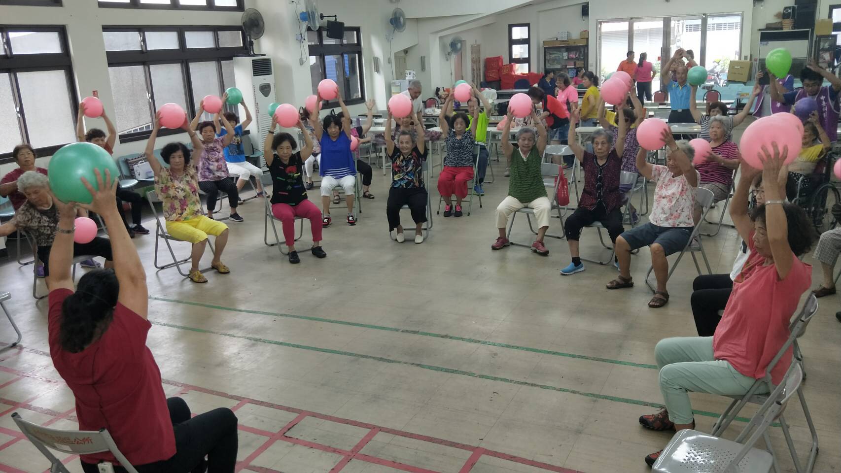蔡主任表示,長輩每週都非常期待上課的內容,透過專業設計的課程,從徒手訓練腦部延緩失智、極球和彈力帶訓練肌力、樂趣剪刀石頭布、氣球和扇子訓練反應,有趣的課程讓長者學習從「心」出發,建立長輩的自信並延緩老化。