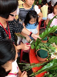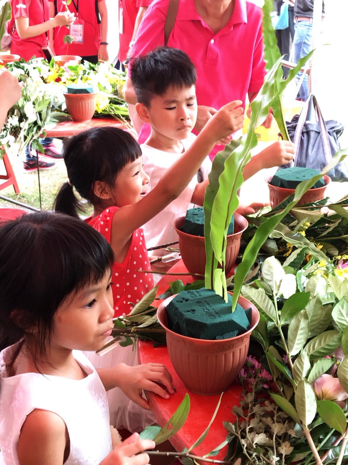 台中花博將開幕,台中市政府許多迎接花博的暖身活動陸續登場。農業局今(8)日在北屯區民俗公園舉辦一場花藝推廣活動,運用在地花材,除讓民眾欣賞花卉之美外,也親手插花體驗花藝趣味,也希望藉此讓民眾多親近花卉,共同迎接花博盛會的到來。