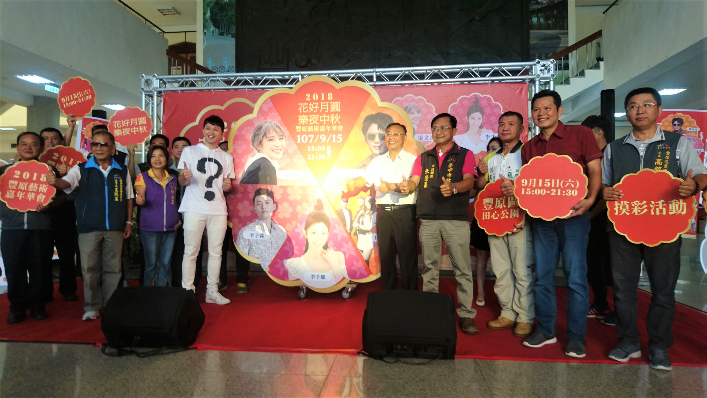 迎接中秋佳節,豐原區公所「2018豐原藝術嘉年華會-花好月圓樂夜中秋」活動將於9月15日晚間7時在豐原區田心公園熱鬧登場,除邀請蕭煌奇、梁文音、李千娜等知名藝人開唱,還有摸彩活動,有機會獲得43吋液晶電視等大獎;下午3時起也有彩繪DIY與團圓即可拍等親子活動,歡迎民眾踴躍參加。
