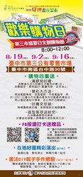 「第三市場夏日文創購物節」系列活動歡樂購物日Crazy Sunday第三場次,於916)壓軸登場,主打購物滿額四重送,消費滿500元即贈生活實用好禮、造型氣球,前2場點數券可累積使用,活動現場也邀請市場文創攤位書法家指導小朋友製作書法DIY文創小品,現場免費報名,邀您週日來看設計展、逛第三市場,虧雞(Crazy)到夏日尾聲,詳細資訊來這查(http://bit.ly/2cn7IDL)!
