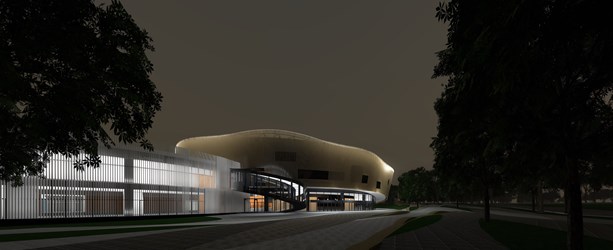 台中花博后里園區的「花舞館」以花朵概念發想,兩棟圓形構築結合鑲嵌構成一個8字迴圈形,並分為大小兩個圓形展覽空間,小圓「蘭花廳」本身即是溫室建築,規劃為長期蘭花展,訴說台灣蘭花產業的發展史;大圓「競賽廳」則邀請國內外花藝大師,展現高超花藝技巧與國產花卉之美,建築的外牆則是具穿透性的玻璃帷幕,在室內即可透過圓型建築360度的環場視線,廣納周邊綠意環繞的遼闊景觀。