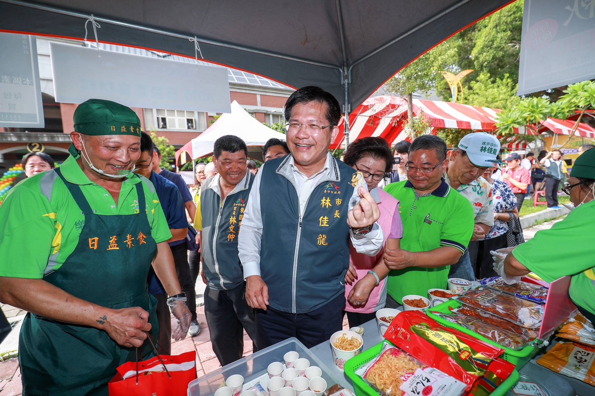 林市長指出,市府積極推動各項重大政策,包括通風、排水、供電、新增公車路線及停車位等措施,而最重要的,就是能讓大家賺錢,台中市除了建國市場,許多傳統市場也一一再造,攤商生意因此變好,尤其過年過節人潮更帶來錢潮。