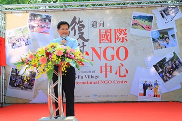 台中市政府積極推動霧峰光復新村為國際非政府組織(INGO)中心,邀請各NGO進駐,希望成為國內外NGO交流平台,今(21)日揭幕。市長林佳龍表示,市府已編列預算先行修復完成13間房舍,目前已有7單位組織進駐;他也宣布,市府明年將展開新一期光復新村修復再利用計畫,與文化部共同推動近1億元的修繕工程,規劃修繕66間房舍,作為國內外NGO辦公、會議及住宿空間,吸引更多國際組織來台中駐點、交流。