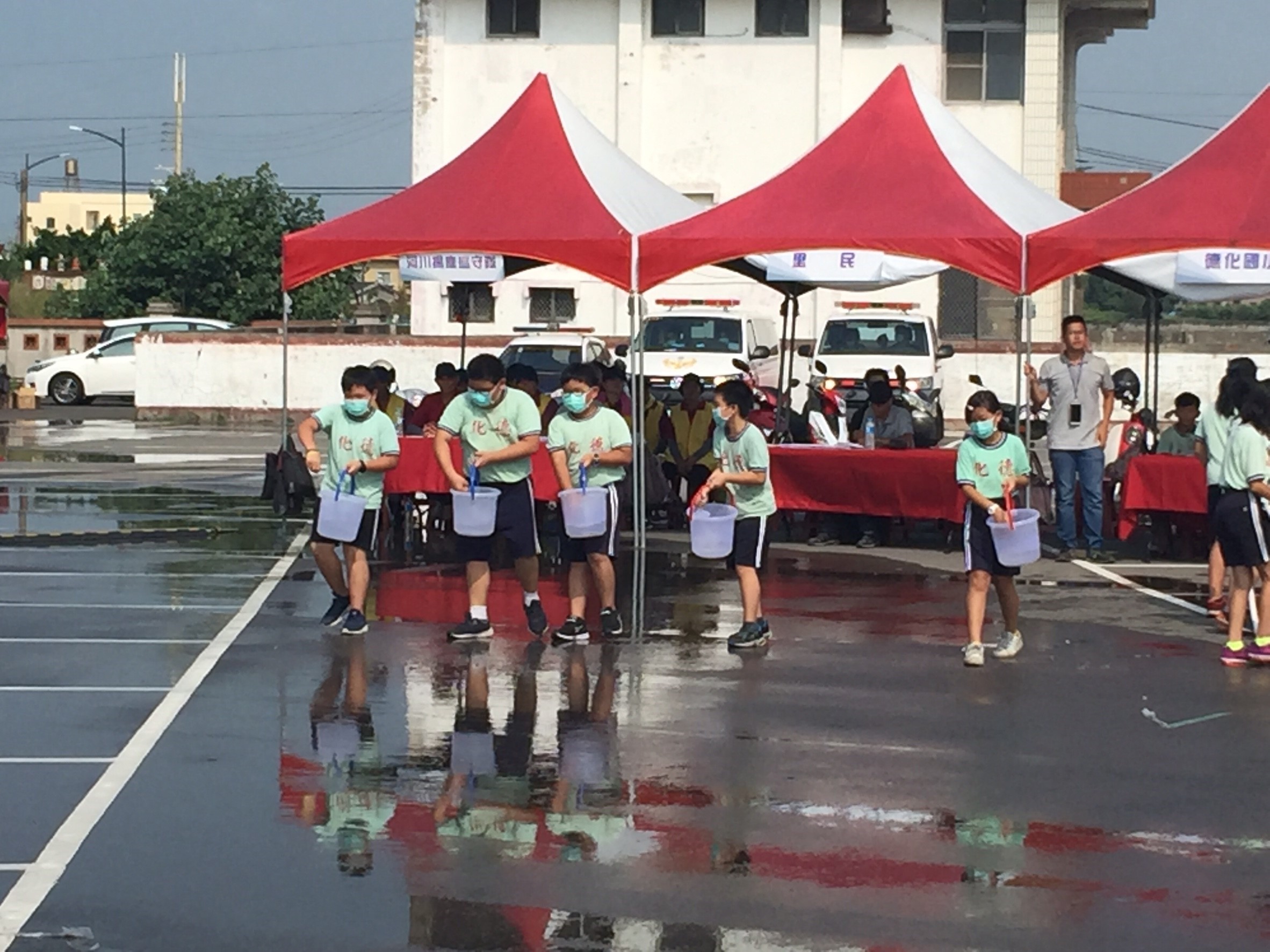 昨日河川揚塵應變防護演練,市府共動員環保、水利、教育、農林、衛生、警察、消防、村里等44個應變單位,分別執行通報、管制、防護任務,以及各機關LED、廣播及電視跑馬燈即時通報,大甲區德化國小也於大安溪出海口附近的頂安里社區,進行河川揚塵防制環境教育,包括在地里長、居民及大甲區德化國小學童等約200人參與。