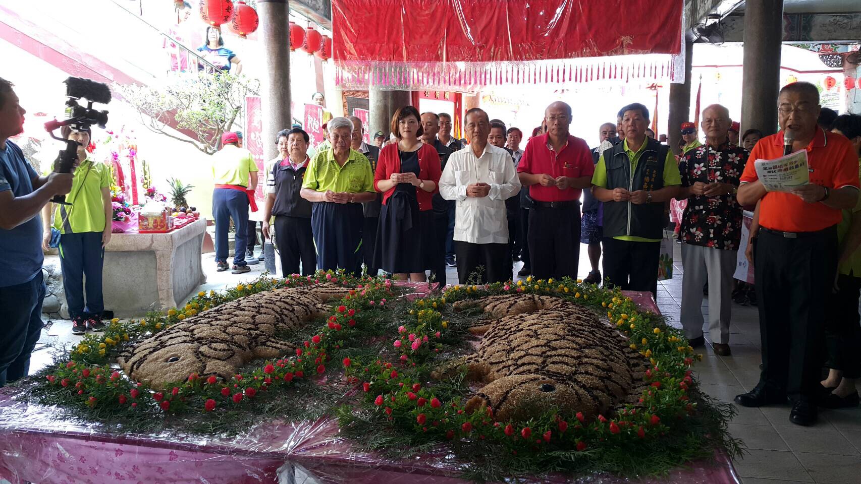 2018台中東勢鯉魚伯公文化祭活動今(22)日於東勢區鯉魚伯公祠熱鬧登場,由副市長林陵三帶領民眾向「鯉魚伯公」及「石母娘娘」祈福,並為當地小朋友「戴絭」及「換絭」,祈求孩子們都能健康快樂成長、也祈祝神靈護土佑民。林副市長表示,這場盛會承載著豐富文化內涵,市府會持續發揚推廣,也期待大家共同薪傳。