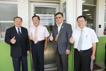 今日於台中高工舉行「台達電產學合作捐贈實驗室揭牌儀式」,台中市政府副秘書長郭坤明、台中高工校長黃維賢、台達創辦人暨榮譽董事長鄭崇華均出席與會,並到3間實驗室參觀,由台中高工同學們解說儀器,場面熱絡。