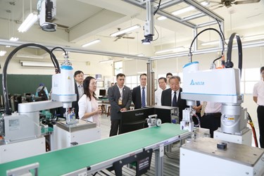 郭副秘書長表示,市府積極打造中市為智慧機械之都,在技職教育方面更強調以「務實致用」做為核心價值,期望縮短「學用落差」,推動產學在地優質合作與創新模式。他感謝台達成為產學合作典範,凝聚台中市機械業群聚能量,也期望學校課程規劃及設計能與產業結合,落實產學訓用合一的目標。