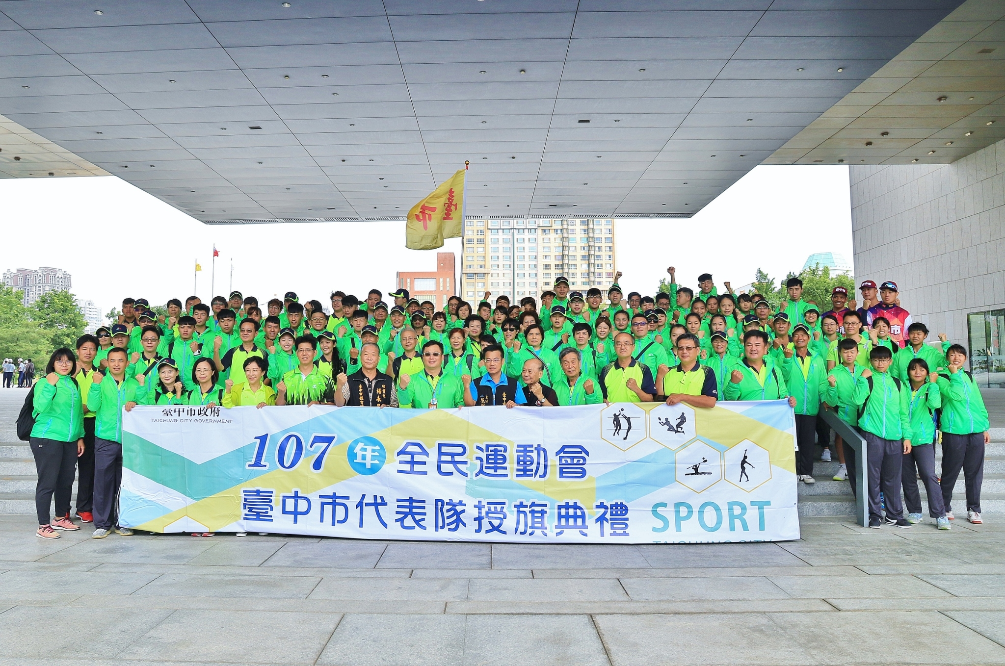 107年全民運動會將於9月29日至10月4日在苗栗縣舉行,台中也遴選頂尖運動員,組隊參加26項競賽,隊職員人數高達759位,今(28)日並由市府副秘書長郭坤明授旗台中市代表隊,為選手加油,期勉爭取佳績。