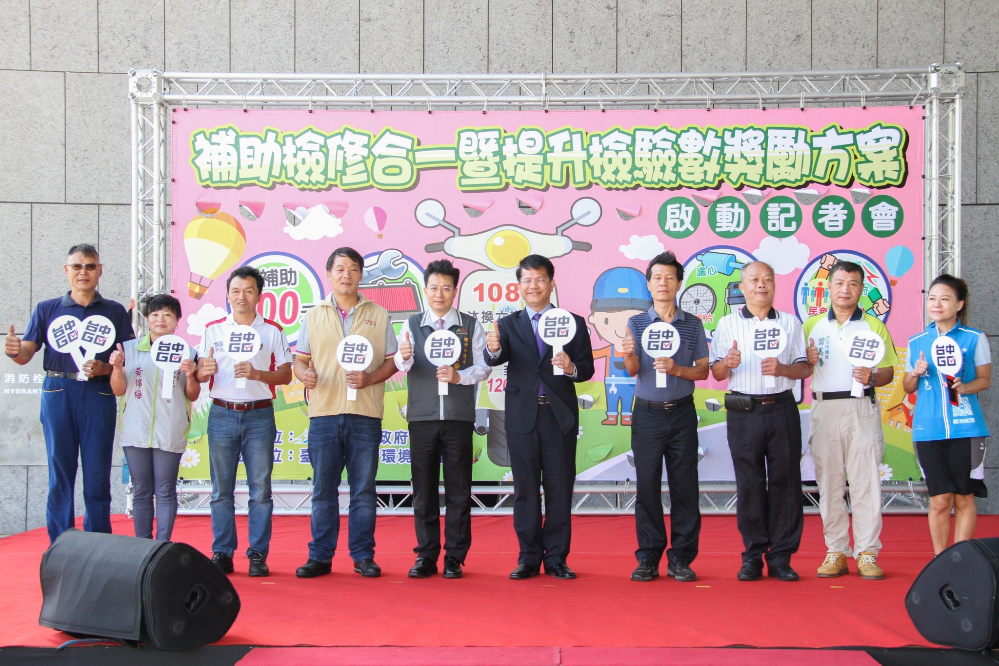 台中市政府今(28)日在台灣大道市政大樓舉行「補助機車檢修合一暨提升檢驗數獎勵方案」啟動記者會,林市長與台中市四大機車公(工)會代表共同揭開檢修合一計畫補助項目,透過全市400多站機車排氣檢驗站作為環保種子,加速汰除二行程機車,改善空氣品質。