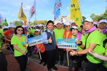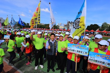 為提倡勞工休閒活動,台中市政府勞工局今(29)日在中區光復國小運動場舉辦勞資趣味運動會,共有51支台中市轄內總工會及工會團體、近2,000名勞工朋友報名,參與跳繩接力、足球等趣味競賽.市長林佳龍表示,在任內每年都會舉辦運動會,鼓勵勞工朋友多參加休閒活動,並凝聚工會團體間的向心力。