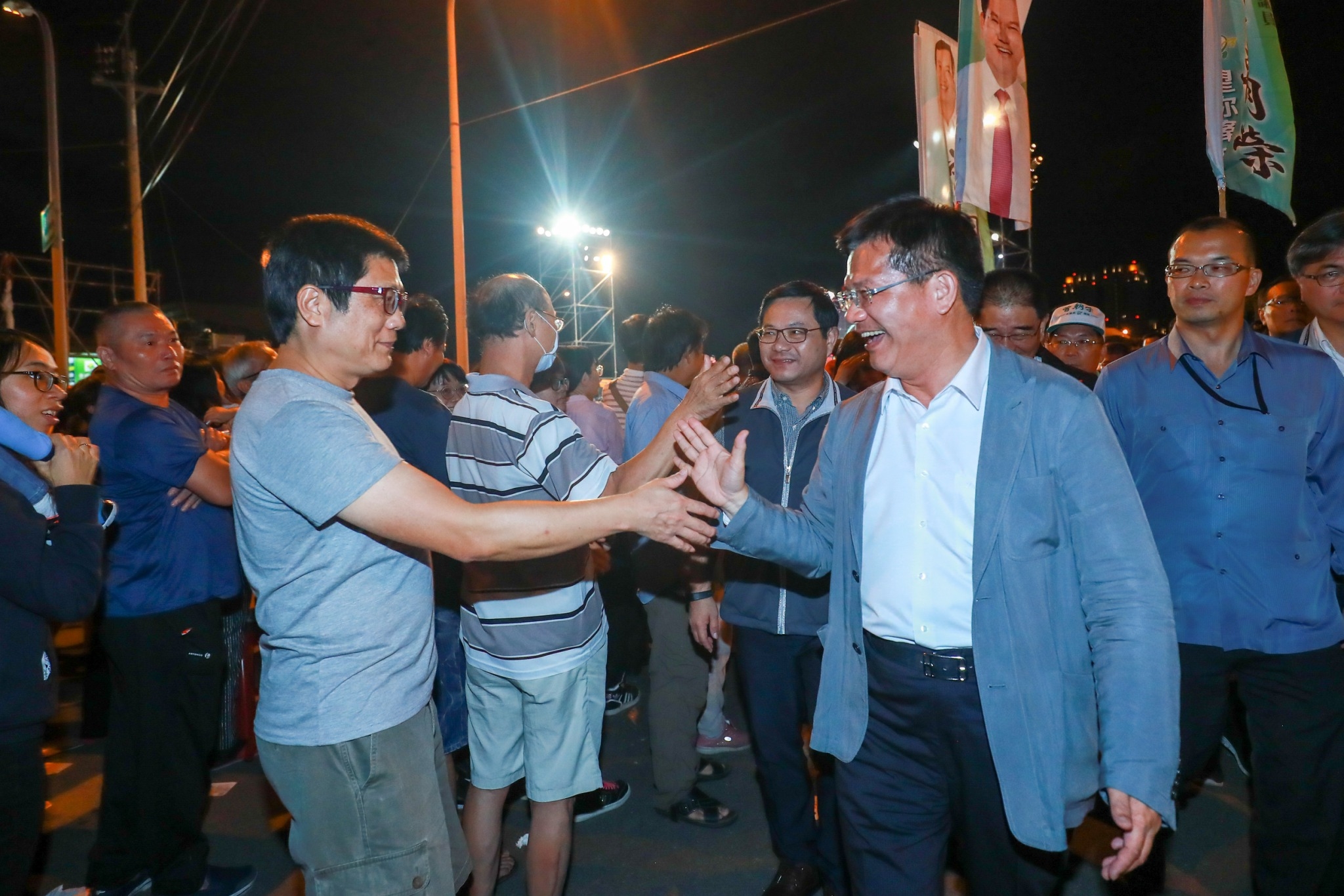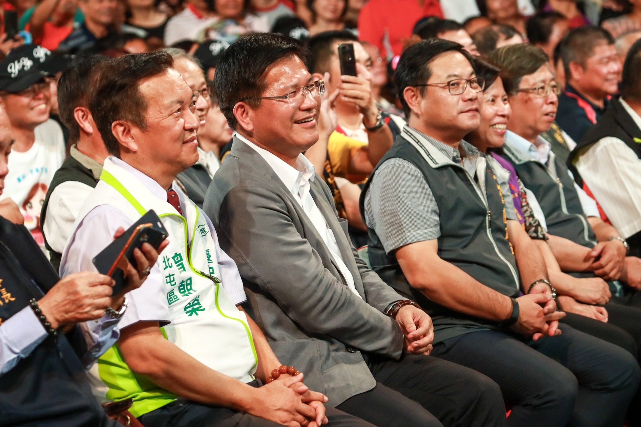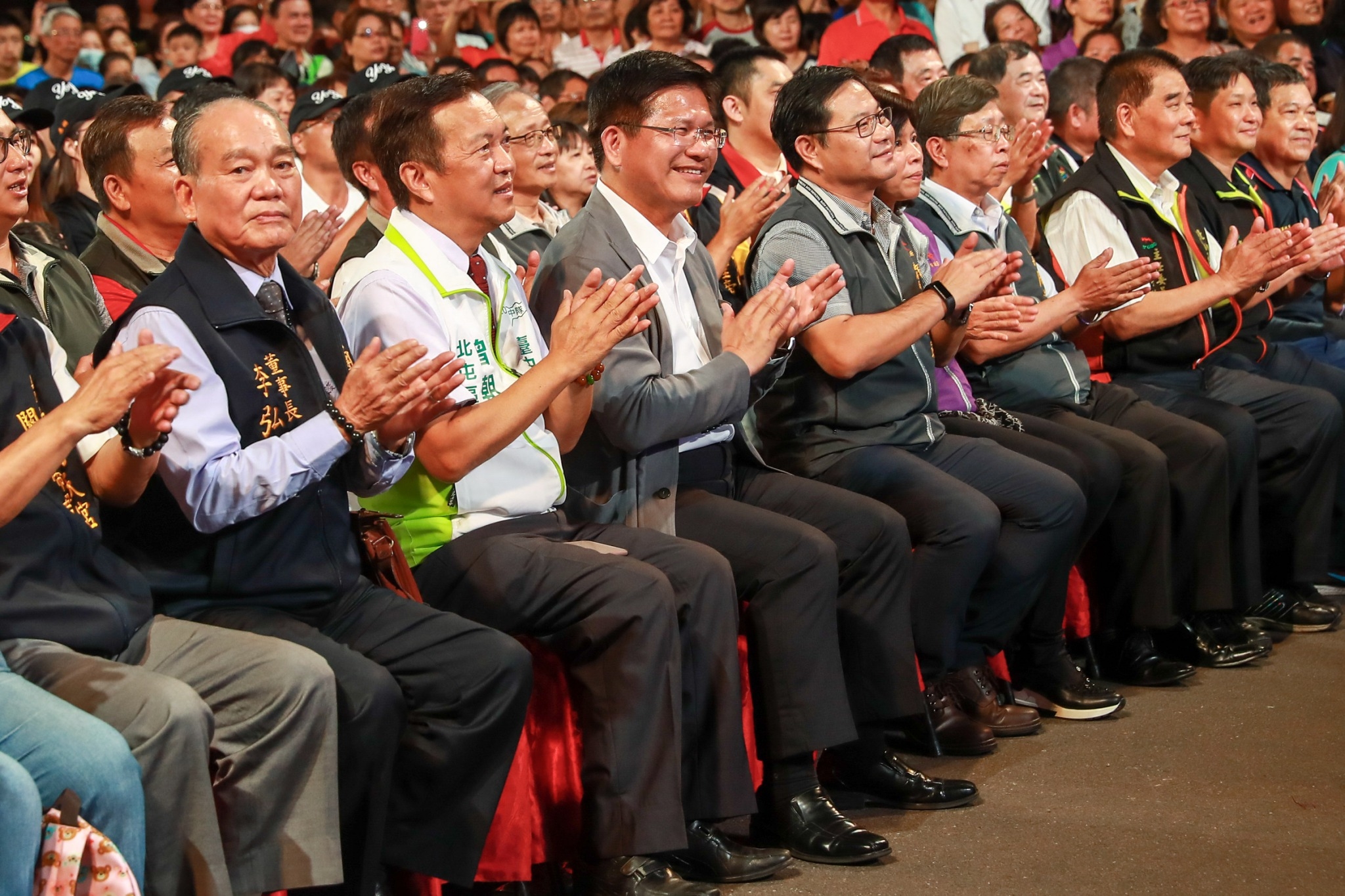 市府今晚邀請超級夜總會製作團隊,舉辦「台中市107年綠色宗教音樂嘉年華」,由主持人澎恰恰、許效舜、苗可麗等人開場,並有多位藝人陸續上場表演,吸引許多民眾共襄盛舉,氣氛熱鬧,包括市議員曾朝榮、旱溪樂成宮董事長郭松益及全市多所宮廟代表也到場同樂。