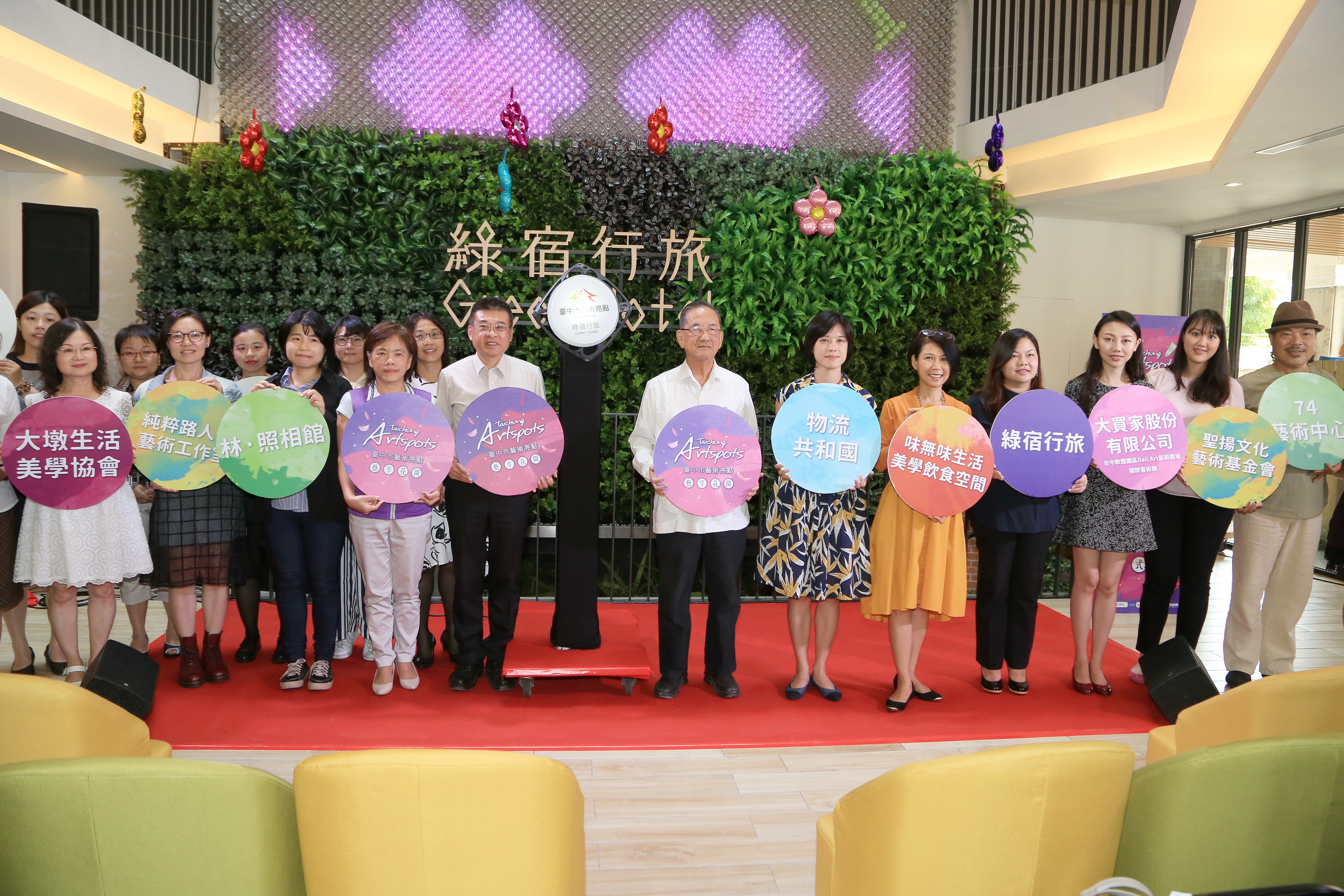(2)日揭牌儀式在新加入藝術亮點家族的「綠宿行旅」舉行,由「主修音樂」優美的音樂演奏開場,展現台中藝術活力。副市長林陵三、文化局副局長黃名亨帶領11家新增藝術亮點代表一同點亮藝術燈箱,歡迎今年新加入的亮點家族,期盼這些平易近人的藝文替代空間,成為市民日常生活品味藝術的場所。西區區長陳麗珠、立法委員盧秀燕及市議員江肇國服務處代表也到場致意。