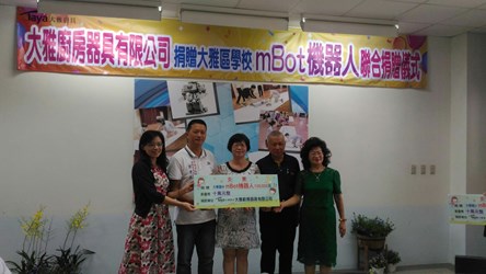 大雅廚具董事長張光男及楊素真主席自105年起捐贈教育設備經費,與台中市政府在大雅區開設「大雅區學校mBot機器人教育課程」,今年提供區內10所國中小每校10萬元,讓每位學生都能接觸並學習使用Scratch程式,不僅為電腦計算、通訊技術教育扎根,也透過知識共享創造豐富的學習體驗。