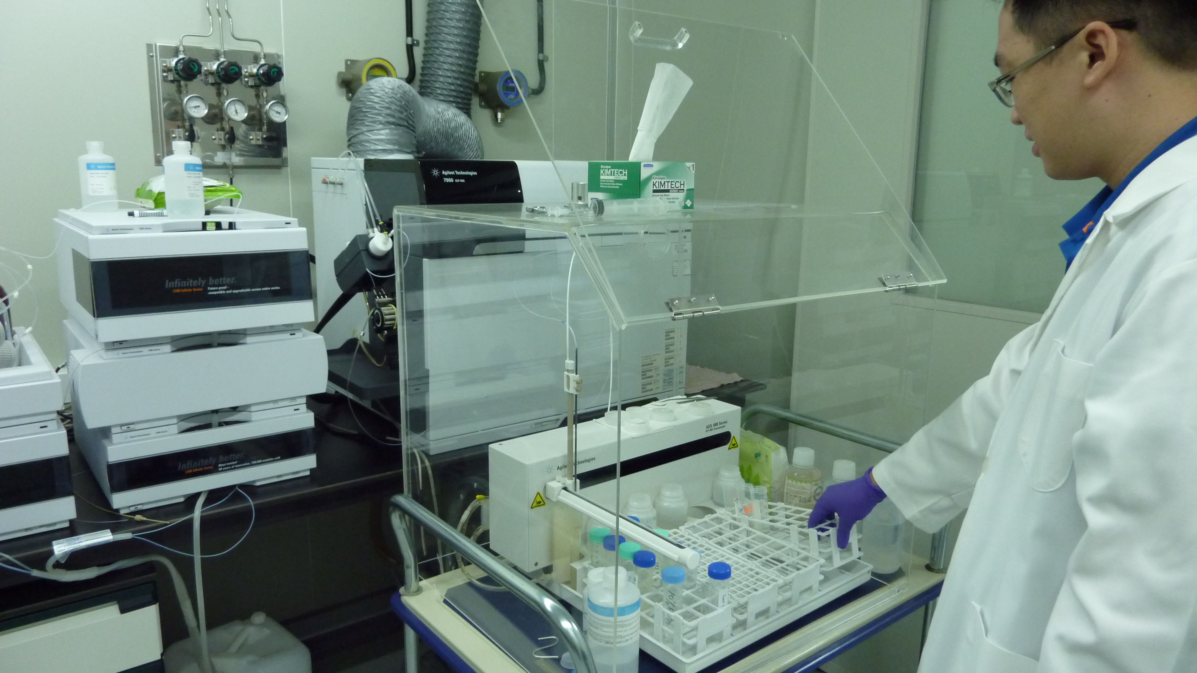 食安處購置感應耦合電漿質譜儀(ICP-MS),分析包裝飲用水中重金屬含量,這座儀器具有快速、靈敏及多元素同時測定的功能,有助檢驗包裝飲用水重金屬情形。