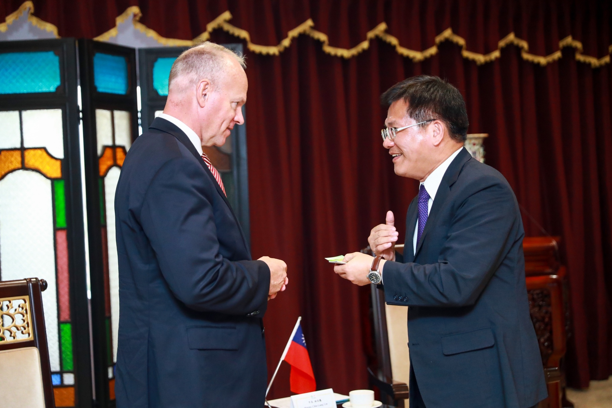 懷俄明州長米麥特前年10月即訪問過台中,此行他率團11人再度前來拜訪,受到林市長熱烈歡迎,經發局長呂曜志、農業局長王俊雄、市府顧問蕭景燈、交通局主秘郭志文等局處代表也共同出席,分享交流意見。
