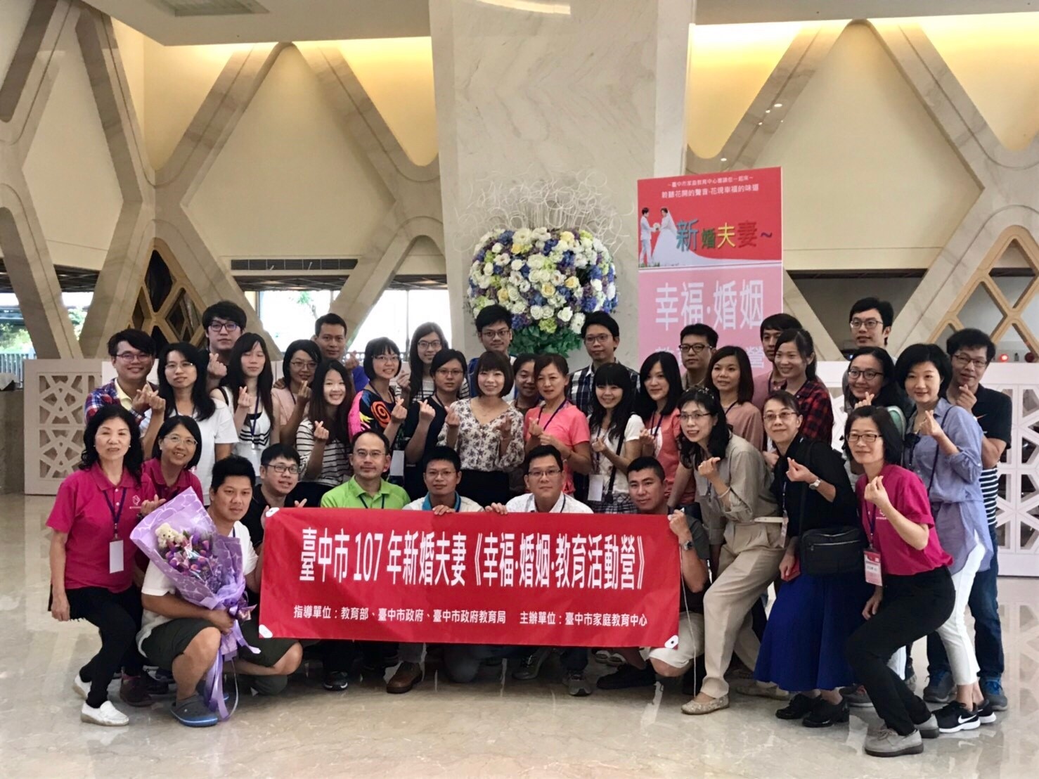 《幸福‧婚姻‧教育活動營》今日於賀緹酒店展開,市府教育局主任秘書黃瀞儀出席啟業式,期勉學員樂於分享及學習,面對婚姻生活差異,也懂得相互磨合達成共識,創造幸福婚姻,並致贈每位學員1份「幸福好袋」,祝福夫妻們都能相親相愛。