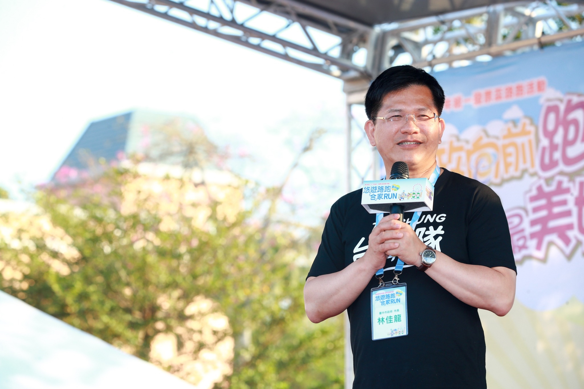 其次是「捐發票,做愛心」,今天的活動會捐出發票給台中地區6個社福團體,讓民眾在運動的同時也能發揮公益;第三,路跑也是相當有益身心健康的運動,很高興這三個目的在今天都可以達成。
