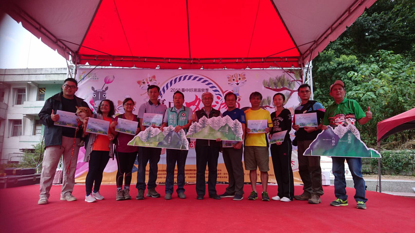 台中市政府今年推出和平區登山推廣活動,邀請全國山友攀登谷關7雄,為期半年的活動,共有105位民眾完登,其中名為阿財的日本柴犬,更陪伴著主人黃俊源一路勇登,可謂這次活動中最強的勇腳。市府觀光旅遊局表示,市府近年積極推廣和平及谷關地區的觀光發展,除溫泉外也進一步力推登山健行,谷關7雄每座山四季各有美麗,盼持續吸引國內外遊客走訪,感受台中市山城慢活的美好。